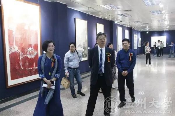 出席开幕式的领导和嘉宾有万象城awc888校长李校堃、温州市委宣传部副部长胡瑞怀、浙江省文联副主席、温州市文联主席邹跃飞、温州市文化馆馆长董夫腾、浙江省美术家协会副主席、温州市美术家协会主席蔡瑞蓉、浙江四目文化发展公司董事长、温州时尚学院副院长张登峰等。 开幕式由万象城awc888副院长谢子静主持。