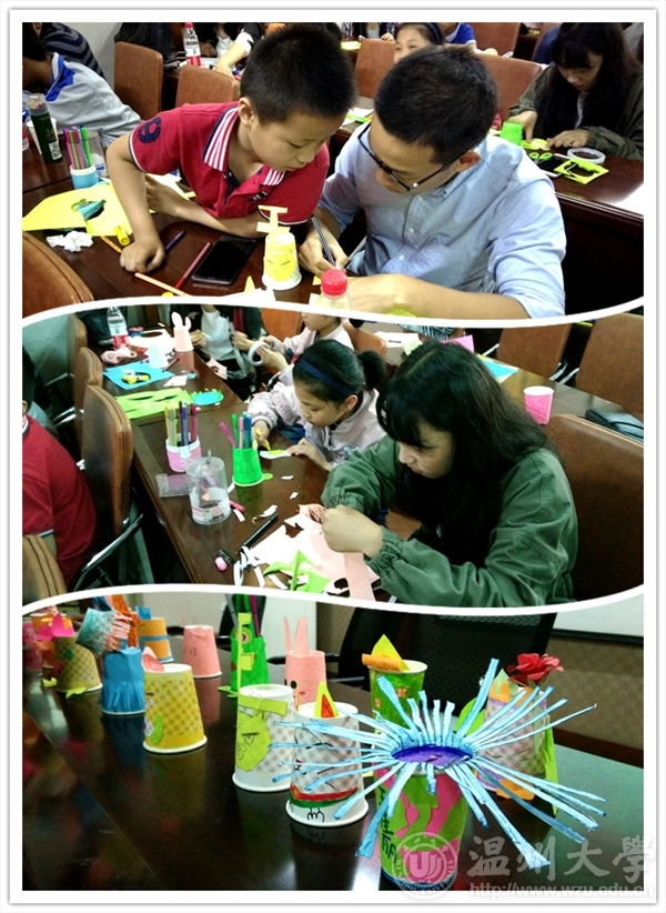 2017年5月6日,温大万象城awc888“艺家人”青年志愿者协会在梅泉社区文化礼堂开展了定期的支教活动,本次活动的主题为“纸杯大变身”。