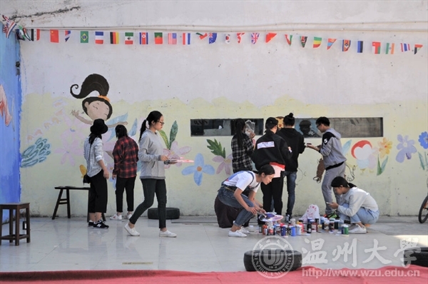 2017年10月29日,万象城awc888“艺家人”青年志愿者协会前往白门侨星幼儿园开展了墙绘活动。志愿者们经过大半个小时的车程终于到达终点站,踏入幼儿园发现,它并没有想象中那么现代化,墙上是被太阳曝晒过的稚嫩童画。刚到那里,志愿者们便开始着手准备,将颜料摊在地上,打水,洗笔……,有条不紊地进行着。随后每个人开始选自己要画的卡通人物,由于园长告诉我们,这是孩子们跳舞的场地,所以志愿者们也跟着主题走,上网搜集了许多可爱的卡通舞者,选好之后,二话不说就动起手中的水粉笔开始绘画,志愿者们先用铅笔打稿,用黑色颜料勾线,再上色。不一会儿,肉色的皮肤,粉红的裙子,精美的发饰,优雅的舞姿等便在蓝色的墙面上显现出来了。志愿者们大肆挥舞画笔,用嫩黄和天蓝颜色打底,在太阳底下让人看了温暖极了,太阳也愈演愈烈,志愿者们的头上也开始出现汗珠。上午的时间飞快地流逝,吃过饭后小憩一会,志愿者们便接着干活,同时又把墙面整体地刷了一遍,更突出了人物,再加上一些花花草草的点缀,整个围墙都漂亮醒目了起来。园长十分开心,志愿者们也很欣慰。快结束的时候,还有这边的上级领导来视察,夸奖了我们志愿者的工作成果,也给了一些有用的建议。本次活动开展的目的在于给幼儿园的小朋友们增添不一样的色彩,让他们在一个多彩地小世界里快乐成长、快乐学习,同时也锻炼了志愿者们自身的耐心和技巧,肯定了我们温大人的能力。此次活动让志愿者们收获了很多,早已疲惫的身体里面却是满满的幸福,虽然做的不多,但志愿者们把自己所学到的知识都应用起来了。同时,也希望我们志愿者点点滴滴的行动可以对社会的其他人带来感想,让越来越多的社会人士开始关怀心中的点点滴滴,给予需要帮助的人更多温暖!图/文:金 哲罗会慧董 悦