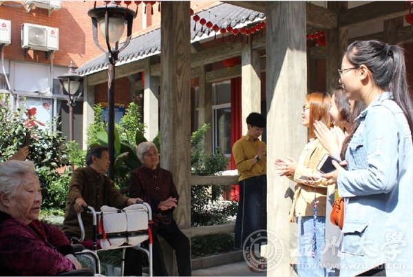 2017年10月28日,温大万象城awc888“艺家人”青年志愿者协会于上午8点30分在E区门口集合,前往名盛敬老院开展重阳节关爱老人志愿服务活动。