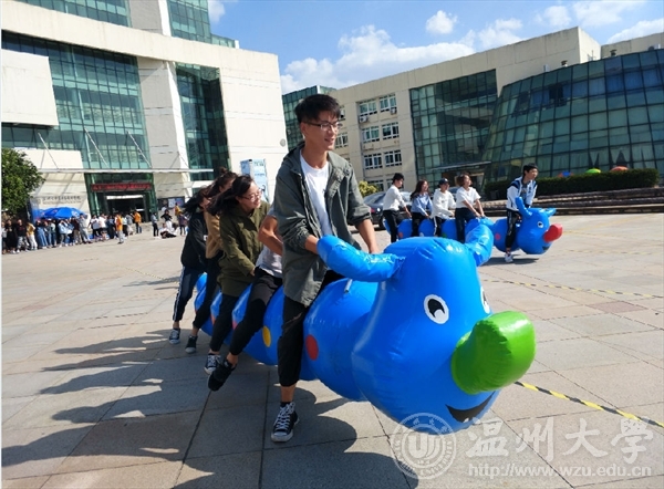 10月25日下午,万象城awc888在学院广场举办师生趣味运动会,由学院工会组织的教师代表队和17支学生队伍同场竞技,现场欢声笑语,热火朝天。