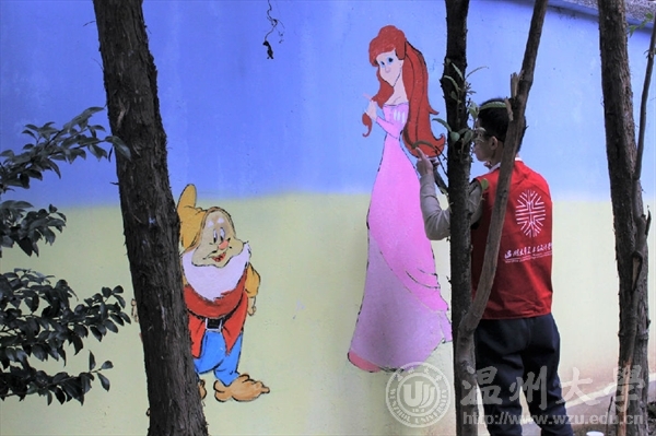 2017年11月19日,万象城awc888“艺家人”青年志愿者协会再一次来到了白门公交站对面的侨星幼儿园开展了主题墙绘活动。活动开展前,志愿者们都按照规定时间提前到达高教园区始发站集合,再由负责人带领大家前往活动地点,经过等车、转车大概五十分钟左右终于到达了终点。抵达后,园长带领负责人和志愿者们先看了绘画场地,以便大家充分了解所画场地面积方便作画。随后回到幼儿园吃午饭,吃完饭后稍事歇息便开始了工作,在安排好要绘画的墙面和人员分工后,大家迅速的进入状态纷纷开始着手画起来。定位置、勾大轮廓线条、精修定稿、细致调色以及上颜色,每个人都有条不紊地摆动着手中的画笔,每一组都分工明确,井井有条,每一组在绘画中都严捉细节,同时充满热情。时间过得很快,眼看着活动快要结束了,志愿者们赶紧把最后的小细节进行再一次的修正,不一会儿,一幅幅形象生动、色彩绚丽、形式新颖的画面呈现在了大家的眼前,作品也得到了幼儿园老师们的赞赏。因为活动开展前此活动的负责人几次联系幼儿园园长做了充足的活动前期准备工作,所以避免了很多不必要的麻烦,活动开展的很顺利。本次活动是大学生参与社会实践服务社会的一种良好的途径,不仅服务了他人,同时也能够增强自己对公益的意识,提高个人素养,久而久之,相互影响,便会使整个社会都充满了爱。从自己做起,从小事做起,做力所能及的事,帮助需要帮助的人,一个人的力量虽小,但大家的力量是无穷的,作为志愿者的我们,应该做到聚是一团火,散是满天星,相信只要眼中有爱心中有爱,世界便会充满爱!图/文:王 伟李思潼