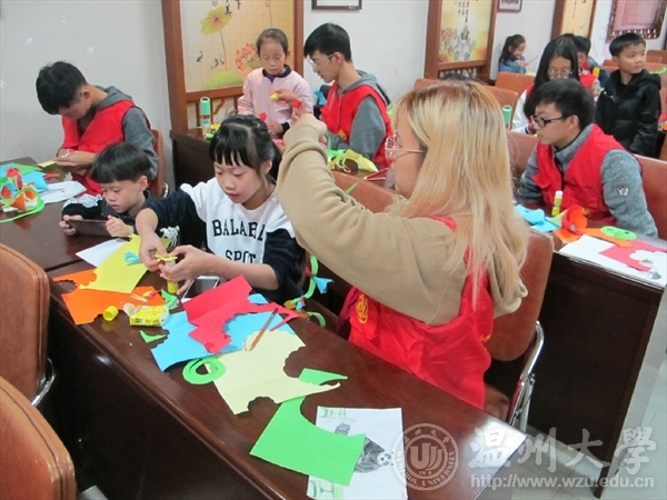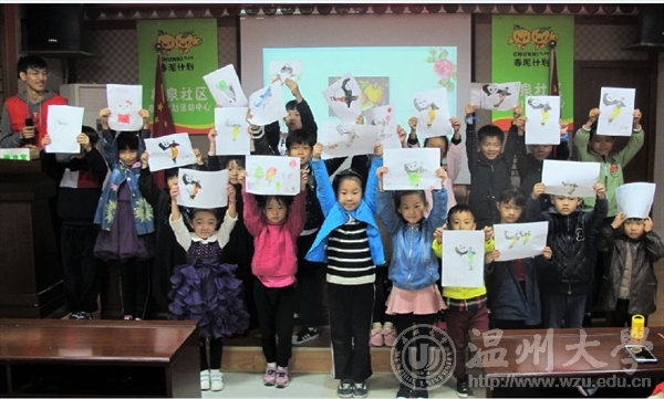 2017年11月18日,温大万象城awc888“艺家人”青年志愿者协会如期来到了梅泉社区文化礼堂进行了以“感恩”为主题的志愿活动。伴着微凉的风志愿者们又来到了熟悉的地方,开始了新的支教之旅。首先负责人陈南同学给小朋友们放了一段九分钟的亲情公益广告,志愿者和小朋友们都安安静静地看着大屏幕,脸上的表情也随着广告的剧情发展而变化,时而皱眉头,时而微笑。随后陈南同学根据公益广告中所涉及的人物开始组织大家画功夫熊猫。白白的绒毛肚子,夸张的高抬腿动作,橙色的趣味裤衩,大家画的津津有味。紧接着是评奖环节,小朋友们争先恐后地上讲台展示自己的作品,画的出色的十个小朋友得到了一根精美的糖果和有趣的红外线笔,没得到奖品的小朋友们也没有灰心,继续等待着下一轮的评奖机会。最后一个环节是手工活动——做花藤。这是做贺卡很重要的一部分,用来装饰。志愿者先剪下一条蛇状绿色纸条做藤蔓,再由小朋友们在彩色卡纸上画上花片,大家一起分工合作,其乐融融。花片卷成花瓣,粘在藤蔓上,很漂亮。陈南同学说,这都是用来粘在贺卡上的装饰,也可以粘在房间里,而做好的贺卡可以送给爸妈、老师来感恩他们的培育,也可以送给朋友感谢一直陪伴。活动期间,恰巧有教育局的领导来梅泉采访,比往常更热闹一些,同时领导也对我们梅泉志愿者认真负责的态度连连称赞,并表示希望梅泉支教能够越办越好!通过本次活动,小朋友们不仅锻炼了动手操作能力,而且让小朋友们更加了解感恩是什么,知道要对父母感恩,要对朋友感恩,要对帮助过自己的人感恩。只要人人将自己所怀有的一颗感恩的心,变成实际行动的感恩时,这个社会将会多一分温暖,将会多一缕阳光的存在,将会多一点芬芳,同时也希望志愿者们和小朋友们常常怀有感恩的心去对待所遇到的人和事,你们的这份感恩的心将给予别人更多温暖。图/文:金 哲罗会慧董 悦