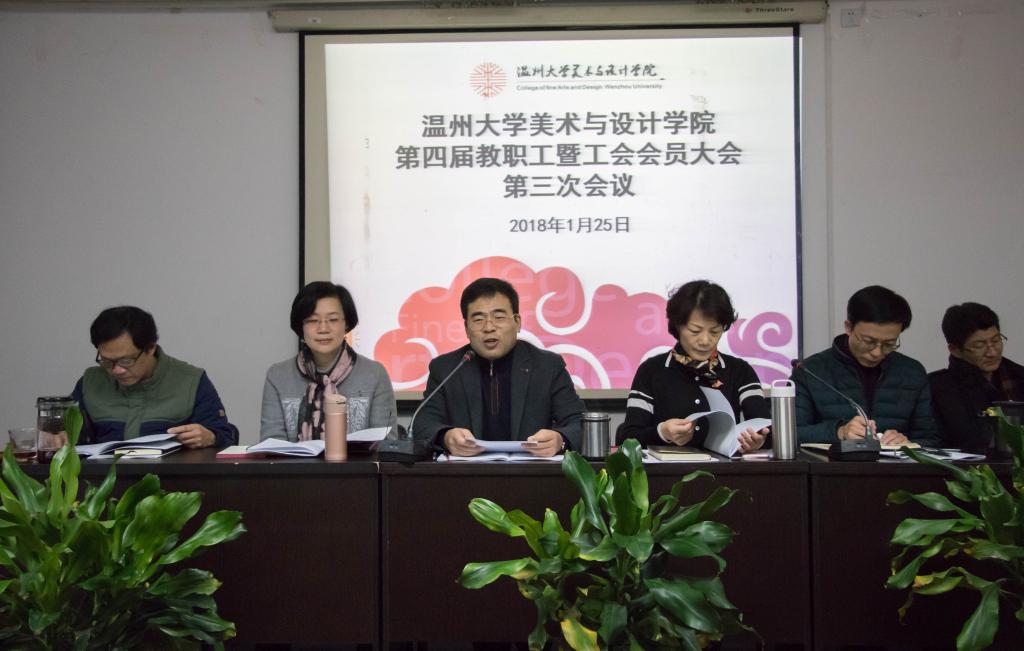 2018年1月25日下午,万象城在2B4001召开第四届教职工暨工会会员大会第三次会议。学院全体教职工参加了大会,会议由学院党总支副书记杨振海主持。