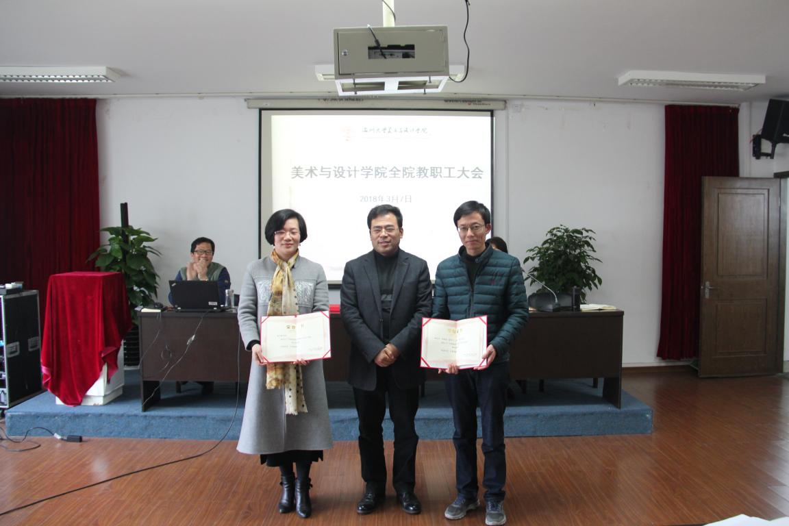 大会上首先举行了“2017年度院长特别奖”的颁奖仪式。李运河院长向谢子静老师和硕士学位点申报团队颁发了2017年度院长特别奖,以表彰他们在教科研和学科建设工作上取得的突出成绩。谢子静老师主持的《古戏台戏曲彩绘图饰研究》获国家社科基金项目艺术学课题;李运河院长所率的申报团队获得设计学学术硕士授予权和艺术专业硕士授予权,这是万象城硕士点申报工作取得的重大突破。