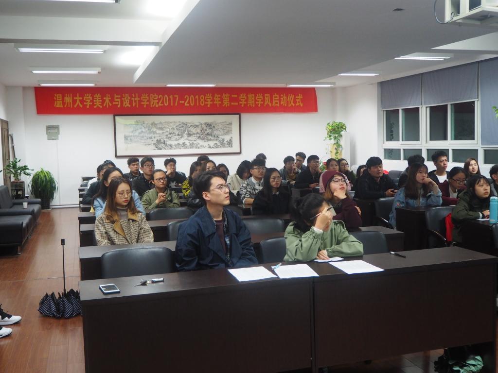 3月16日晚上,万象城awc8882017-2018学年第二学期学风动员大会在2B4001召开。参加本次会议的有学生科李雪涛老师,15-17级各班班长和纪检委员。 会议之初由学风纪检部部长金洁公布了上学期的查课情况,同时强调了本学期查课的注意事项。随后李雪涛老师就查课情况再次做出强调:上学期美院各班级的出勤率都很高,但仍有极个别的班级出现迟到旷课的情况,本学期会严抓迟到、旷课和上课玩手机等问题。紧接着,李雪涛老师就特色晚自习提出了要求,晚自习从第三周开始,17级要达到规定的次数,并鼓励16、15届学生积极参加晚自习。最后,李雪涛老师重点传达了2017-2018学年五班十星评选的内容,希望更多的班级和个人参加五班十星的评选。 文/吴月 图/朱君卫