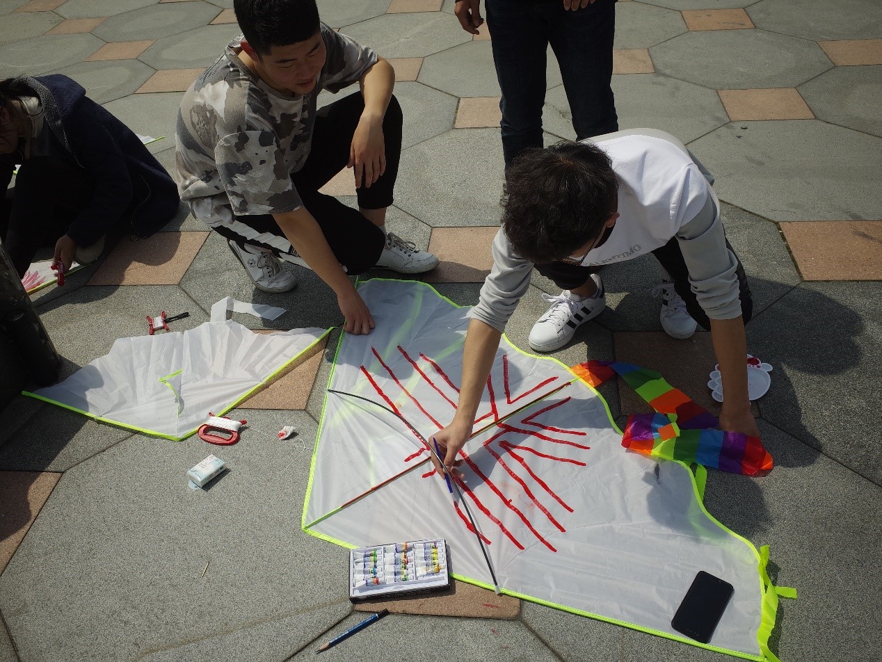 比赛开始前,参赛选手们利用马克笔和颜料等工具在自己的空白风筝上画涂鸦,做出了一只只有自己特色的风筝,不久便引来了很多大人和小朋友们的围观。比赛刚开始,很多选手都控制不了风筝,很难让风筝稳定下来。有的风筝掉到了地上,甚至开始在地面上“漂移”;有的风筝挂在树上,在树上开始了它的“午睡”;还有有两只风筝相撞在一起,像是出了“车祸”,状况连连。一次次的失败后,选手们也渐渐开始摸索到了技巧,耐心的利用风向掌握风筝,变得收放自如。看着一个个风筝越飞越高,选手身边又引来了很多可爱的小朋友。有些选手便拉上旁边的小朋友们和他们一起放风筝,整个比赛现场充满了同学们和孩子们欢声笑语。活动结束后,同学们一起清理场地上的垃圾并将自己的风筝作为纪念品送给了在场的小朋友们。