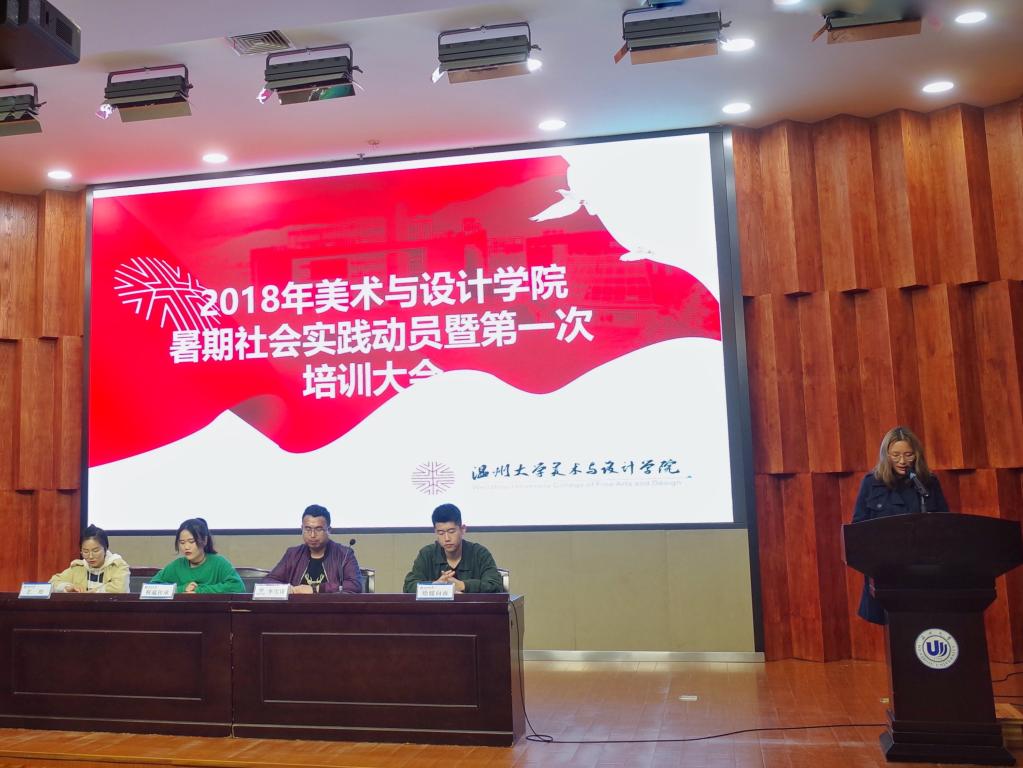 3月25日晚,万象城awc888暑期社会实践动员暨第一次培训大会于雁山厅举行,本次大会由美院团委学生会学术实践部主办,美院2017年优秀实践队长以及团学指导老师李雪涛出席了此次大会,参与本次动员会的成员还有大一全体同学。 此次大会共分为了四项议程,首先是观看2017年暑期社会实践成果视频,视频较为全面的介绍了万象城awc888各个学院、学区的实践队情况,接着由学术实践部代表付秋圆同学为大家介绍了暑期社会实践具体流程及实践重要性。接着,17年优秀实践队队长分享他们的收获与感受,“绘暖向南”实践队队长许雷学长用他幽默风趣的演讲带起了会议的气氛,他鼓励大家通过优质的暑期社会实践,用自己的能力提升自身价值;然后是“艺绘”实践队队长邹琴学姐从她提炼的四个词切入,“创业”、“成熟”、“减肥”、“脱单”,她用这四个词概括自己在实践中的收获,鼓励大家积极参与其中,同时也鼓励大家可以勇于创新,积极创建全新的实践队,她也愿意在策划方面帮助大家,最后是“鞋蕴传承”实践队队长陈晨学姐,她鼓励大家实践与专业相结合,通过实践看到自身专业发展的方向。三位队长通过各自各具特色的展示,并结合自身经历,让大一同学们对社会实践有了一个初步的认识。大会最后李雪涛老师进行了讲话,结合新时期对当代大学生的要求,阐述了实践的重要性及其意义与目的。 此次暑期社会实践大会在很轻松愉悦的氛围中度过。通过这次大会各学生能够更清楚的了解暑期社会实践的基本情况,相信通过这次大会的召开,各学生能积极认真负责的参加暑期社会实践活动。