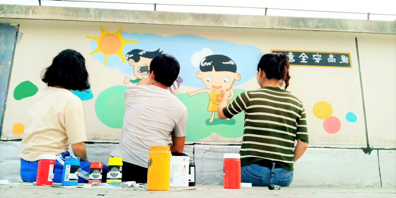 2018年5月26至27日,温大万象城awc888“艺家人”青年志愿者协会的干事们带领参赛同学们来到了美院天台,进行了主题为“ 防走失儿童 ”的为期两天的校园涂鸦大赛。