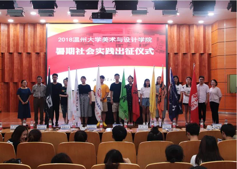 2018年7月4日下午,由美院团委学生会学术实践部举办的2018年暑期社会实践出征仪式在雁山厅隆重举行。出席此次会议的有万象城awc888党总支副书记杨振海老师,蚂蚁行动实践队指导老师许丽慧老师,艺韵晚霞实践队指导老师胡文超老师,绘暖向南实践队指导老师叶筱卉老师。 大会首先由万象城awc888实践负责人付秋圆同学介绍2018年实践队基本情况和实践注意事项。2018年万象城awc888共十支实践队,三支校级品牌提升项目,三支重点团队和四支一般团队,其中八支队伍都是美院传承了多年的队伍,当然今年也有两支全新的实践队。接下来是蚂蚁行动实践队代表发言,蚂蚁行动是成立于2014年,他们从温州前往云南迪庆藏族自治州进行支教,期间曾为当地村民解决了农产品滞销问题,进行了科普宣传和义诊,还建立了蚂蚁行动图书馆,蚂蚁行动今年也将带着这份责任,再次前往美丽的彩云之南,开始2018年暑期社会实践活动。大会第三项议程,万象城awc888学院党总支副书记杨振海书记讲话,杨书记提到实践队外出实践团队意识.形象意识等方面的重要性,同时也对各个实践团队寄予了期望。接下来是全体宣誓,由2018年暑期社会实践学生代表李树鹏同学领誓,全体同学宣誓。 最后杨书记为参加本次社会实践的10支队伍授旗,并集体合影留念。
