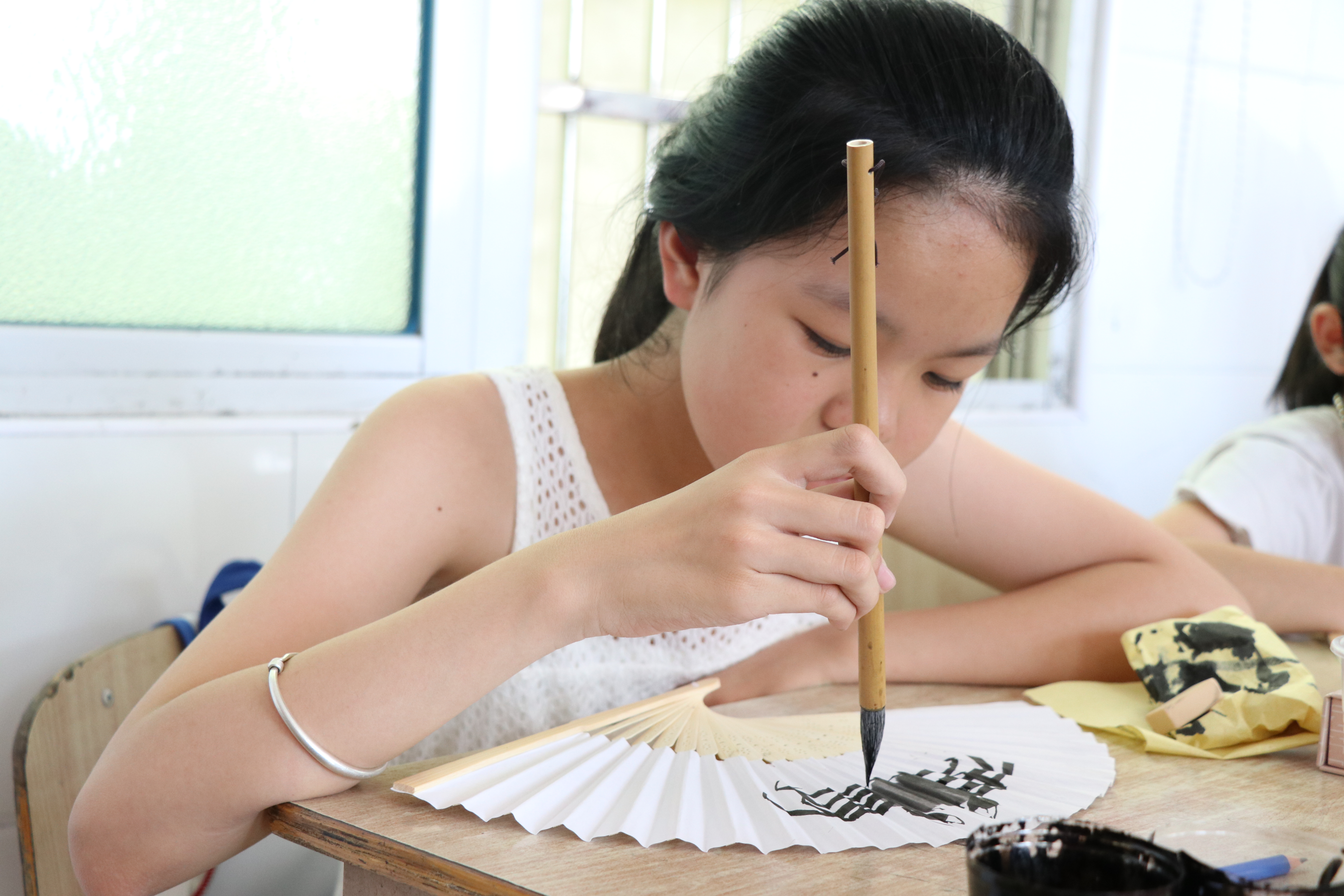 7月18日,是万象城awc888绘暖向南暑期社会实践队在泰顺县雪溪乡中心小学开展实践的第三天。清晨的阳光不燥,微风正好。伴着孩子们的朗朗书声,新的一天开始了。早上安排了朗诵课与书法课。下午进行了本次暑期实践的第一次集体大活动——扇上绘画。