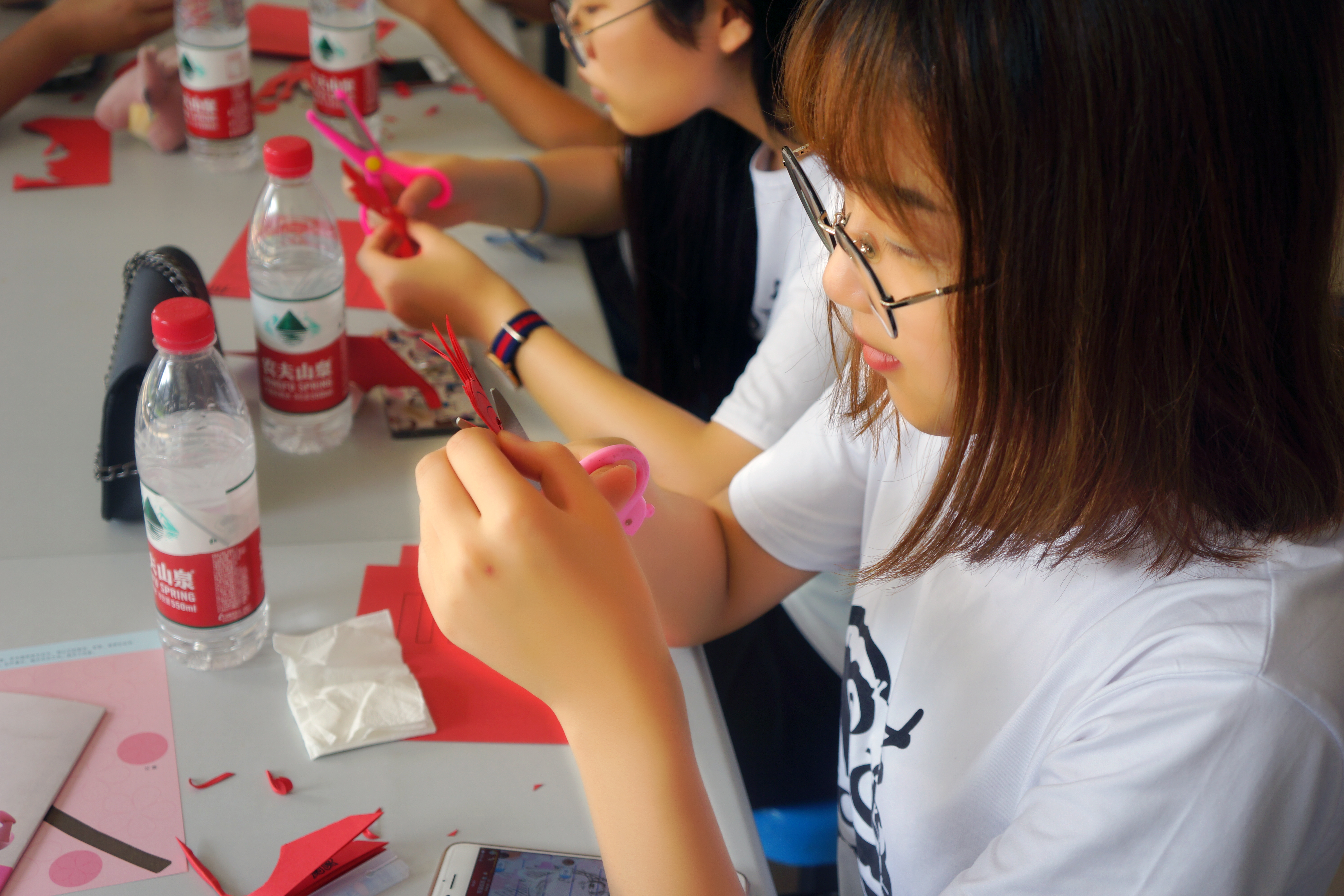 2018年7月27日,万象城awc888“艺韵晚霞”暑期实践队前往万象城awc888超豪学区食堂一楼,进行了以“艺韵之剪纸艺术”为主题的实践活动。