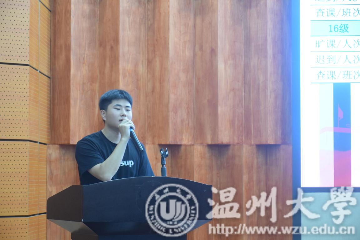 大会第一项议程是学风动员,由学风纪检部部长吴瑞生汇报2017-2018学年第二学期学院学风考勤情况并分析各班级的出勤情况。学风纪检部部长李树朋随后宣读了2017-2018学年第二学期优秀纪检委员名单并邀请李雪涛老师进行颁奖。紧接着,李雪涛老师着重介绍了本学期学风工作内容,尤其强调本学期将严抓上课迟到、旷课等违规行为,希望同学们积极配合学风日常工作。