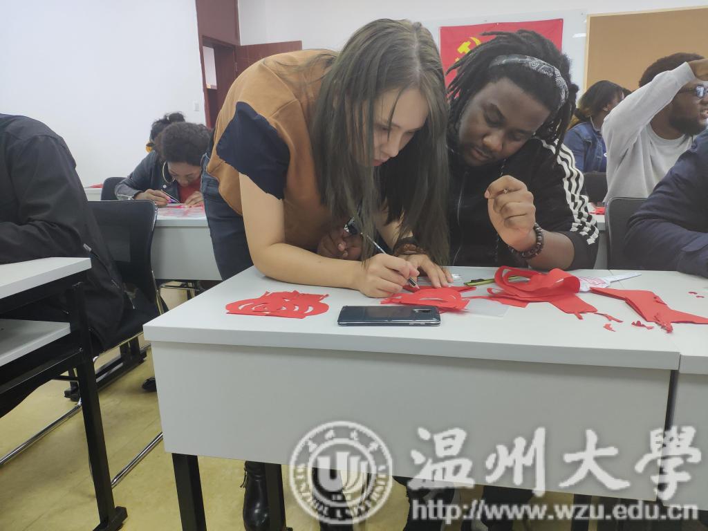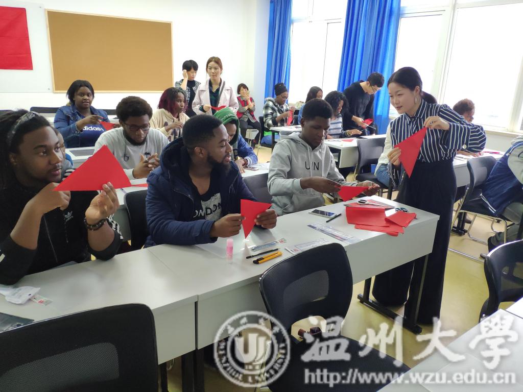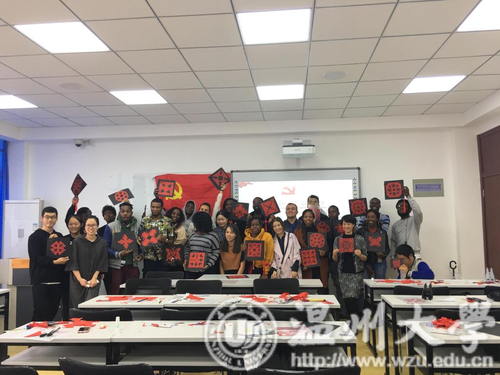 为了传承并发扬中国传统文化,丰富留学生校园文化生活,2018年10月22日下午,万象城awc888结合自身特色,与万象城awc888商学院合作,一同在北校国际楼开展了以中外剪纸文化交流为主题的活动。出席本次活动的领导有万象城awc888党总支副书记杨振海、商学院党总支副书记刘开练、商学院国际部主任王洪斌以及商学院教师吴海蓉。 活动的开始,商学院的吴老师首先向留学生们介绍了本次活动的目的与意义,介绍前来开展活动的美院研究生代表们,同时也对在场的留学生们的积极性表示了充分肯定,尤其是第一次参与学院举办的课外活动的18级新生。老师提到,希望同学们能够好好表现,争取在此次剪纸活动中有所收获,了解剪纸艺术。 此次,带领留学生们剪纸活动由万象城awc888研究生党支部主教。美院研究生代表徐苗苗为大家讲解了中华剪纸文化的历史内涵,介绍了剪纸中“福”和“寿”的具体意义,以及藏在火红的剪纸图画背后的中国老百姓们对生活的美好向往。生动的解说让留学生们沉迷其中,同时留学生们也忍不住赞叹中国传统文化的博大精深。接下来是动手环节,留学生们在美院研究生的带领和指导下,按剪纸的基础步骤一步步进行,每个人还积极思考,发散思维,加上了自己对剪纸的理解,进行了图案的设计与创作。留学生们完成了一幅幅形象生动的剪纸作品,同时也提高了动手能力,初步学习了中国传统艺术之剪纸。 活动的最后,美院研究生代表选出了留学生剪纸作品的一二三等奖,美院的研究生和留学生一同在领导老师带领下,参观商学院一楼新落成的留学生活动中心,颁发奖品并合影留念。留学生们脸上洋溢的笑容,展示着他们对中国文化体验交流活动的浓厚兴趣与快乐。希望美院的研究生和商学院多多交流,希望中华传统文化能一直传承下去。