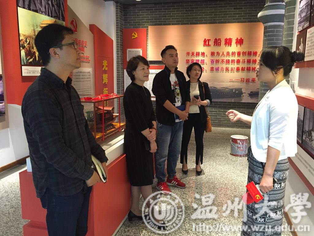 10月31日,学院行政教工党支部一行5人前往瓯江学院参观交流党建思想工作和创新创业工作。院党总支书记张丽萍、副书记杨振海作为支部成员一同参加交流活动。 上午10时,支部一行直奔瓯江学院“党员之家”,迎面而来的中共一大会址风格的门厅立刻吸引了全体党员的注意力:崇敬而神圣,庄重严肃里满溢青春的热情奔放。瓯江学院组织部部长张青青为支部一行做了详细讲解和深入沟通。瓯江学院新型“党员之家”主要以“红船精神”为指引、以“温州精神”为内涵、以“瓯江精神”为核心,按照“洋到底土到家”、“一个都不能少”、“行散而神不散”的设计理念,通过教育区、展示区、会议区三个区域,综合展示了瓯江学院党建思想工作的宗旨信念、精神风貌与优势特色。通过参观学习,全体支部党员被该党员之家所呈现的党性教育核心、红色教育内涵、党员发展的实践特色以及特色鲜明的党建工作风貌深深折服,尤其是通过党建思想工作所搭建的各类平台,如五十小时志愿服务、大学生志愿服务认证中心、党建学院、“红翔”学院等,充分发挥了大学生党员教育的示范功能以及红船精神红色文化的育人功能。瓯江党建工作阶段成效带给支部成员的不仅是身临其境的党性教育,更是心理心灵上撼动与启发。 在学习交流中,全体党员一致认为,瓯江党建工作的创新做法和工作成效非常值得称赞,尤其是瓯江党建工作所呈现出来的创新精神与组织活力,更值得行政支部全体党员在基层教辅、师生服务等工作中深入学习。行政支部要将 “有深度、有温度”的服务意识根植心中,不断提升支部的凝聚力和战斗力,通过有效服务于教学科研、人才培养,为学院发展提供延绵不断的精神动力和组织保证。 支部一行还在该院创业学院院长王大将的指引下参观学习了瓯江7号众创空间。