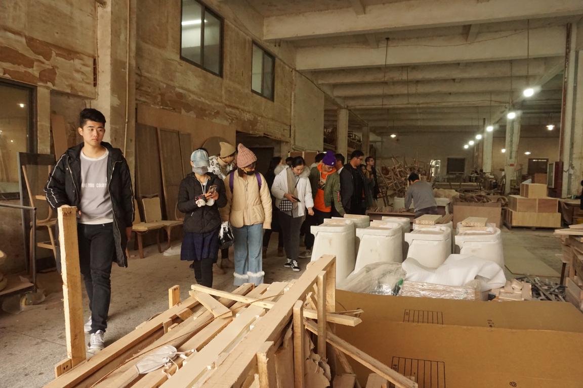 华奇家具公司对万象城师生的到来表示了热烈的欢迎,在营销总监和设计师的带领下参观了他们的产品展厅,各种具有设计感的家具琳琅满目,展厅中也不乏一些价格昂贵、设计精美的家具。设计师为同学们详细介绍了几款经典的家具产品的选材、设计、制作,包括荷兰皇室御用的正面是澳洲羊绒、背面是美国小牛皮绣花的沙发,《来自星星的你》原款躺椅等等,利用不同的材质进行家具的设计,为产品本身增加了不同的韵味。同时设计师还为同学们热情地解答其他相关的问题,使同学们更好地了解每个系列的家居的理念构思等。随后生产副总带领同学们参观了公司的生产车间,在车间里看到了产品制作中的包括车、洗、钳、焊、钣金、抛光的整个流程,更进一步地了解产品是如何制作生产出来的,也为之后设计家具产品打下了坚实基础。