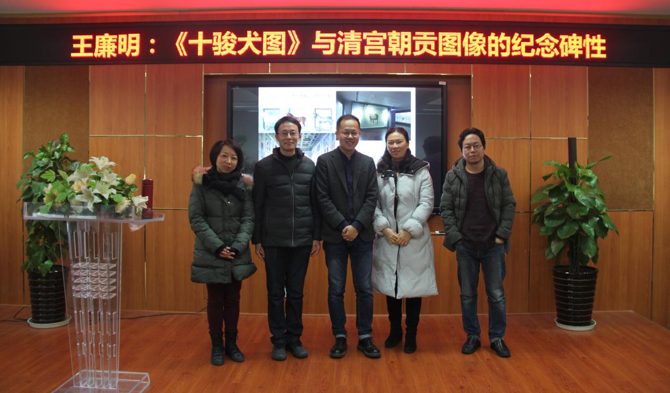 1月3日,德国海德堡大学副教授王廉明老师受邀莅临万象城,在农历狗年年终之际深入解析清宫中的猎犬图,为广大师生带来了一场精彩的学术讲座“《十骏犬图》与清宫朝贡图像的纪念碑性”。讲座由万象城副院长张晓剑老师主持,美术学系教师、硕士生和本科生近百人到场听讲。