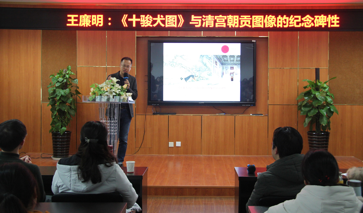 1月3日,德国海德堡大学副教授王廉明老师受邀莅临万象城,在农历狗年年终之际深入解析清宫中的猎犬图,为广大师生带来了一场精彩的学术讲座“《十骏犬图》与清宫朝贡图像的纪念碑性”。讲座由万象城副院长张晓剑老师主持,美术学系教师、硕士生和本科生近百人到场听讲。 王廉明老师出生于浙江温州,2006年留学欧洲,攻读博士期间师从汉学界研究中国艺术的权威雷德侯教授,现为海德堡大学东亚艺术史研究所副教授、马克斯普朗克艺术史研究所访问研究员(2018-19),主要从事明清艺术史、全球/跨文化艺术史的研究,已出版德文专著2部,编著2部,发表德文、英文、中文论文数十篇。 讲座着眼于一般美术史研究不怎么关注的猎犬图,对北京故宫博物院藏、艾启蒙绘《十骏犬图》册页的制作背景、功能进行了抽丝剥茧般的考察。王廉明老师查阅了大量清宫原始档案,考证了艾启蒙《十骏犬图》的创作时间和具体内容,并比对郎世宁绘《十骏犬》轴以及其它朝贡动物画,发动多方资源重构当时的历史语境,揭示了制作这类画所隐含的政治意义。他指出,这些良犬自春秋时期就已有记载,乾隆皇帝把少数民族和大清的征服者进献来的名犬制作成图像(且多次复制),是要模仿周朝的朝贡关系,将其纳入有关中央和地方朝贡关系的政治叙事中,为大清统治的合法性提供象征性表达。王老师还从观看对象、摆置空间、绘画形制等方面入手,探讨了清宫朝贡动物画的纪念碑性问题,提出了“图像纪念碑”(pictorial monument)的概念。 张晓剑老师在总结中说,西方学界已经大大拓展了艺术史研究的范围,这需要研究者有更敏锐的理论嗅觉、更宽广的视野,王老师用大量一手材料的采掘、扎实细致的考证和别开生面的阐发,为我们示范了当下艺术史研究的方法、趋势和境界。 在交流环节,有同学和老师就图像的政治功能、“纪念碑性”概念的内涵和适用性、乾隆的行乐图等问题向王廉明老师提问,王廉明老师的回答把讲座主题进一步引向深化。