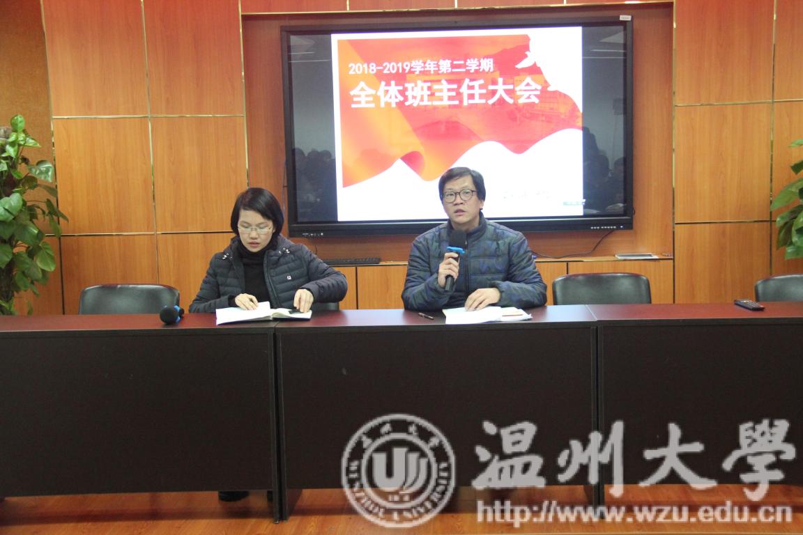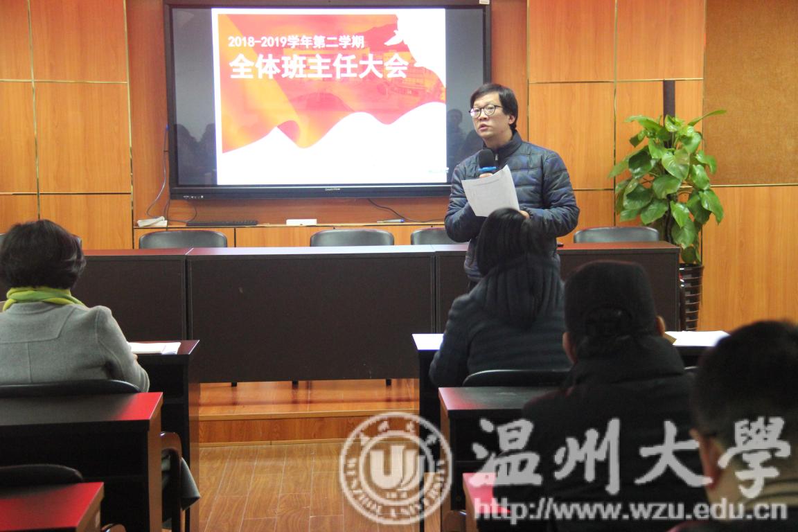 新学期,新风貌。为进一步加强班级建设,增强班主任工作的主动性,促进学院德育工作全面开展,2月27日下午,万象城awc888在2B4001会议室召开了新学期班主任工作会议。