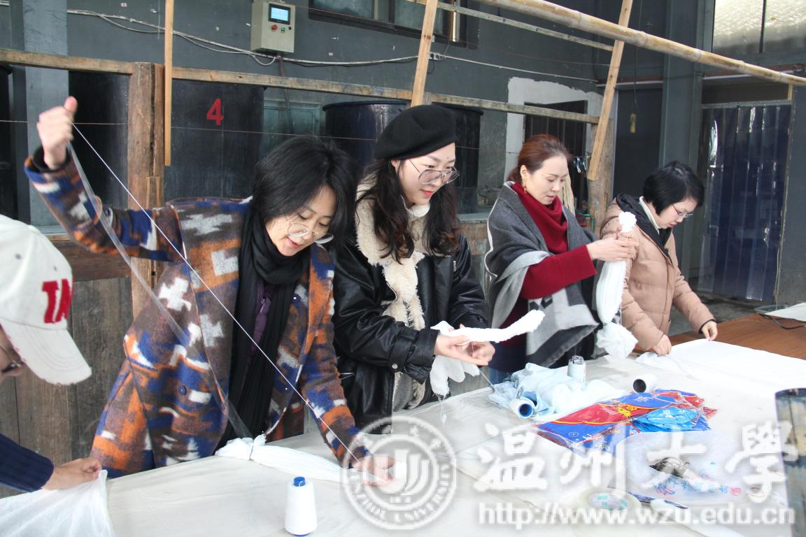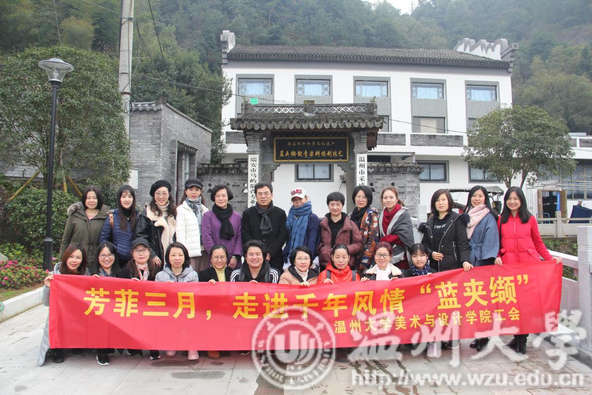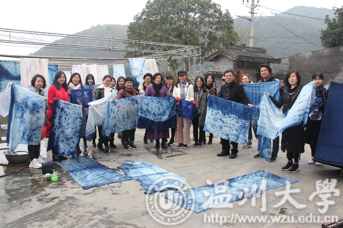 阳春三月,桃李芳菲。万象城awc888工会组织全院女教师赴温州市采成蓝夹缬博物馆,开展世界非物质文化遗产体验活动。 乡野间桃红柳绿油菜花黄,一路上的大家因美景而兴致高昂,谈笑风生欢声笑语洒满车厢。一小时后老师们到达了位于瑞安马屿净水村附近的一幢乌瓦白墙的江南民居式建筑——温州市采成蓝夹缬博物馆。这里山环水绕茂林修竹溪流淙淙,环境十分优美。 温州蓝夹缬技艺代表性传承人、采成蓝夹缬博物馆的王河生馆长热情地到门口迎接大家。在讲堂落座后,王馆长向老师们介绍了我国夹缬印染的历史发展、原料炼制、工艺流程等知识。大家了解到:夹缬印染工艺在我国有着非常悠久的历史,早在隋唐时期彩色夹缬就已十分兴盛;宋以后由于政治经济的因素,彩色夹缬衰落而蓝夹缬一枝独秀获得了长足发展,至明清已成为相当规模的产业;民国以后由于西方工业化印染技术的传入使用天然染料的传统手工印染业陷入困境,以致前些年蓝夹缬技艺在浙南趋于消亡。在党和政府的关怀下蓝夹缬技艺被列入“国家级非物质文化遗产”得到了保护和发展。“青出于蓝而胜于蓝”的传统蓝夹缬印染技艺焕发出了新的生机。 随后在王馆长的引导和讲解下,女老师们参观了博物馆的各个展厅,从明清到当代丰富的藏品为大家呈现出一个异彩纷呈的印染艺术世界。结核自己的美术和设计专业大家纷纷与王馆长互动探讨,气氛相当热烈。之后,老师们还观摩了用木雕版印染蓝夹缬的工艺流程。 最后,为对工艺加深了解,大家亲身实践,拿出布料棉线等材料,制作扎染和蜡染作品。绑、扎、缝、叠、裹……各种技法在美院女老师的一双双巧手中纷纷上阵,创造出一个个姿态各异的布品。再在靛蓝染缸里经过“三浸染三氧化”的染蓝工序,固色漂洗后,一件件花色多变千姿百态的印蓝丝巾呈现在大家面前迎风飘扬,博物馆里院子里立刻飘起了一道靓丽的风景线。老师们站在晾架前面对着各自创造的作品交流着心得体会,欢声笑语阵阵不断。 短短半日,老师们沉浸于传统染缬文化传递的历史美,在这盎然春日,至真至美的地方传统文化再次在寻访之人心中生根发芽,并将年复一年绽放于教书育人的一言一行。(文/图冀千里)