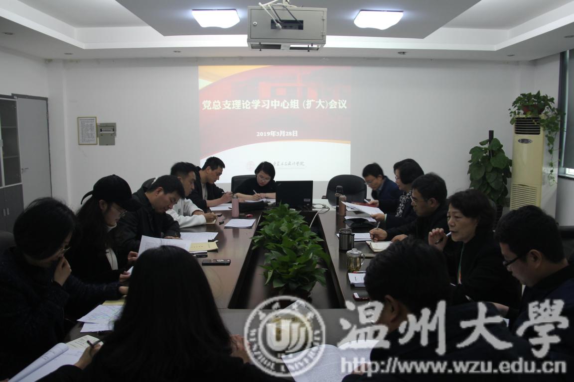 3月28日上午,万象城awc888在2B216召开党总支中心组理论学习(扩大)会暨党务例会。学院党政班子成员、总支委员、支部书记、系室主任参加学习。会议由学院党总支书记张丽萍主持。