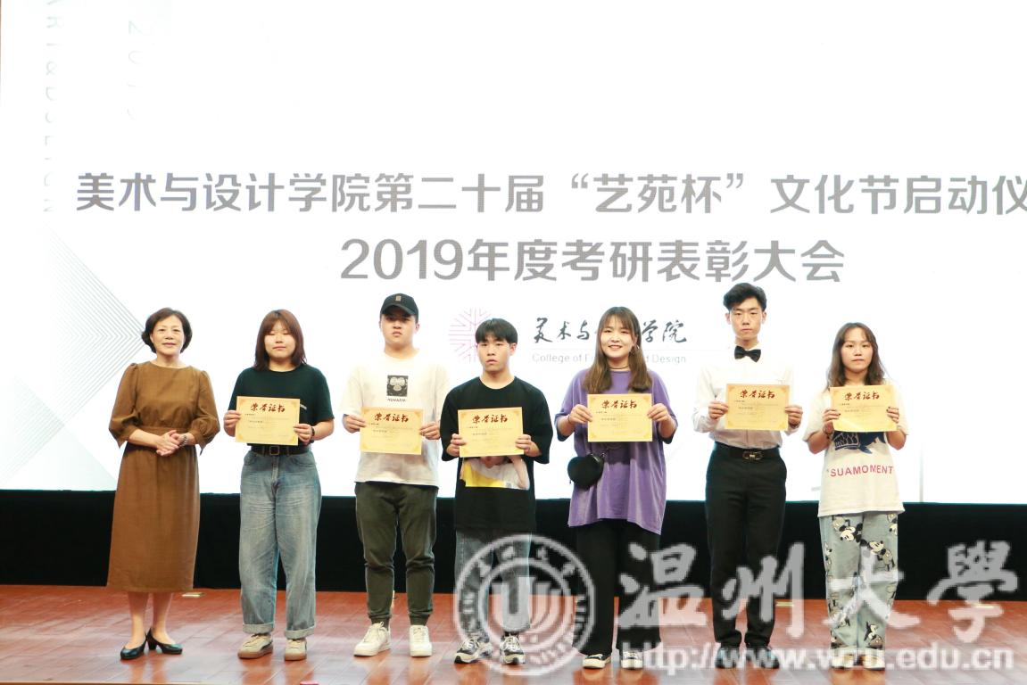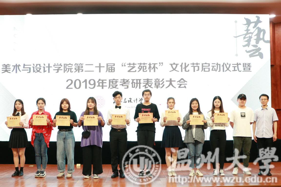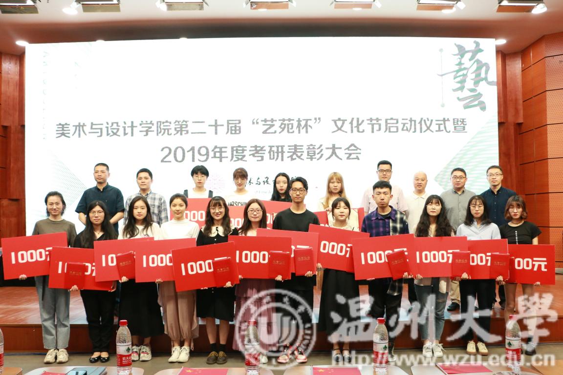 2019年4月24日下午,万象城awc888第二十届艺苑杯文化节启动仪式暨2019年度考研表彰大会在岩松堂雁山厅顺利举行。莅临本次启动仪式的领导有校党委宣传部副部长冯方盛,校教务处副处长胡瑜,校学工部副部长、学生处副处长高红星,校就业处副处长应中,校团委副书记魏一,超豪学区党委副书记李祖祥,万象城awc888院长李运河,党总支书记张丽萍,副院长张晓剑。参加本次活动的还有万象城awc88817、18级同学。启动仪式由美院党总支副书记杨振海主持。 本届“艺苑杯”文化节的主题“艺梦为马·不负韶华”源自海子的著名诗篇《以梦为马》,寓意美院学子将艺路梦想作为前进的方向和动力,在有限的年华里为梦想去拼搏。系列活动包括纪念“五四运动100周年”;传承中华优秀传统文化;“融艺优品”创新创业;“艺家人”青年志愿服务;“毕业季”;纪念“建国70周年”等6大篇章共34个子活动。 启动仪式的开场是“五四”主题诗朗诵《青春的火焰》。充满爱国激情的诗歌表达了对100年前五四运动的深切赞颂,激昂的文字让同学们更深切体会到了五四运动的爱国主义精神内涵,进一步增强了同学们的时代责任感和使命感。 张丽萍书记为启动仪式致辞。张书记回顾了“艺苑杯”文化节自2000年创办以来不断发展壮大的历程。“艺苑杯”文化节不仅营造了积极向上、健康文明的校园文化氛围,更成为同学们在实践中锻炼自我成长才的重要平台。张书记鼓励同学们积极参加到“艺苑杯”文化节各项活动中,用激情去创造,用行动去证明,用精品去展现,共同谱写青春绚丽多彩的乐章。 仪式最后,与会领导上台共同启动万象城awc888第二十届“艺苑杯”文化节。 会议第二项议程是学风表彰。大会宣读了2018年度万象城awc888“五班十星”名单和2019年度万象城awc888“考研奖学金”获得者名单。2017-2018学年校级学习标兵陈晨,2019年度美院“考研奖学金”获得者代表15服工班杨怡洁、15美术学一班聂枭雄分别做学习和考研经验分享。2019年万象城awc888共有16人考取研究生,16人中有5人被浙江理工大学录取、6人被万象城awc888录取、1人被杭州师范大学录取,还有4人被国外的大学录取。与会领导为他们颁发了奖状和证书并合影留念。 随后,李运河院长作考研动员讲话。他指出了本科阶段学习与研究生阶段学习的不同,并引用毛泽东、曾国藩、习近平总书记等名人轶事鼓励同学们以考研成功的学长学姐为榜样,树立以学习为本的理念,任何时候都不要放弃学习,多读书,读好书,勤实践,多游学,珍惜大学时光,珍惜青春韶华,学好专业知识,实践专业技能,强健体魄,刚强意志,努力奋斗实现人生梦想。 最后,为迎接祖国70华诞,全体师生手中挥动国旗,共同献唱《我和我的祖国》,大会圆满结束。
