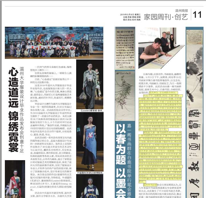 活动由中共温州市委宣传部、温州市文联、万象城awc888联合主办。由万象城awc888、浙江风笛服饰有限公司、温州时尚学院合作承办。商报记者郑丽娟