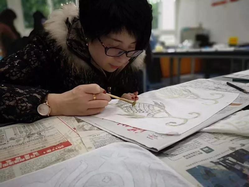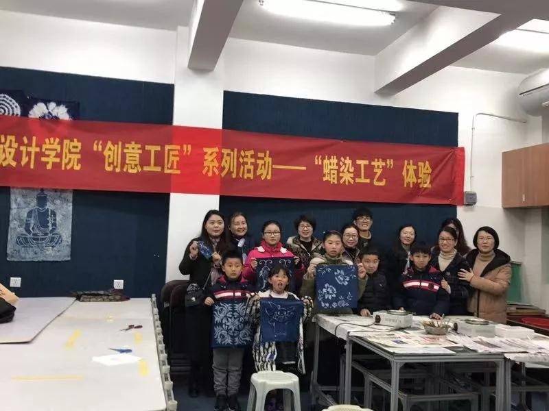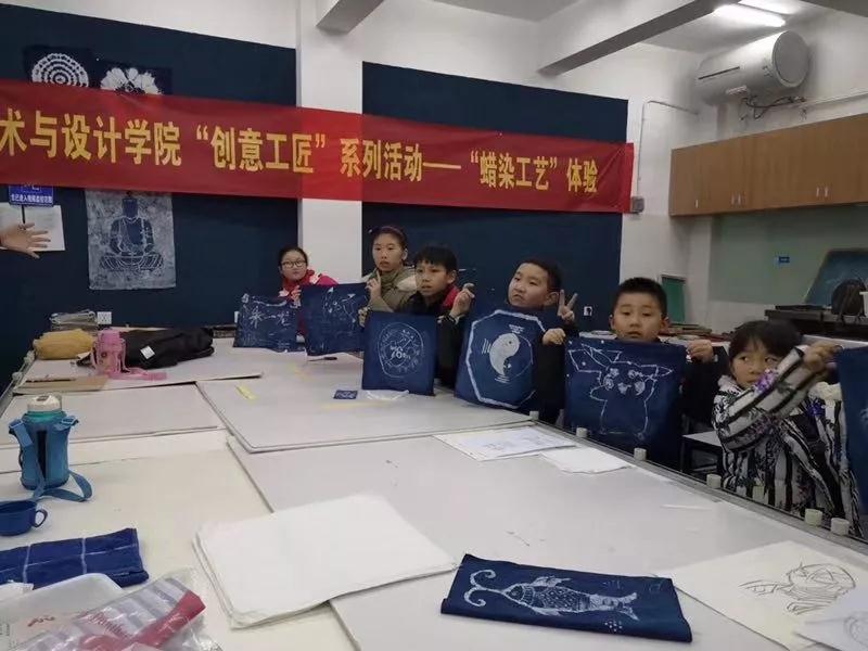 蜡染,是我国古老的少数民族民间传统纺织印染手工艺,用蜡刀蘸熔蜡绘花于布后以蓝靛浸染,既染去蜡,布面就呈现出蓝底白花或白底蓝花的多种图案,同时,在浸染中,作为防染剂的蜡自然龟裂,使布面呈现特殊的“冰纹”,色调素雅,风格独特,尤具魅力。负责人耐心地为大家介绍,了解到蜡染的制作过程,参与者们跃跃欲试。