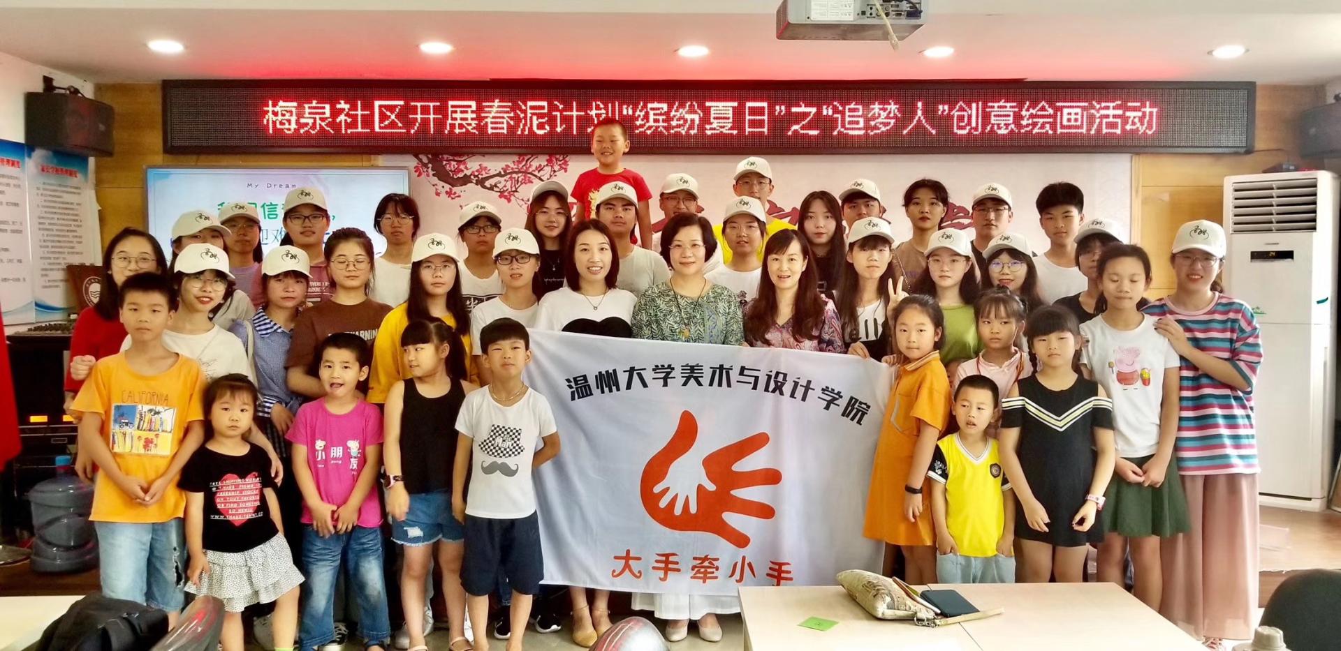 “大手牵小手”暑期社会实践队是一支由人文、化材、建工、数电、外语和美术等学院学生组成的暑期实践队,共有25名学生。该队伍致力于服务和关爱留守儿童和空巢老人,队伍通过探访,宣传,问卷调查以及支教等形式来开展社会实践活动。2019年7月16日上午9时许,万象城awc888美术学院院长谢子静、副书记杨丽君慰问了正在茶山街道梅泉社区开展活动的“大手牵小手”暑期社会实践队。