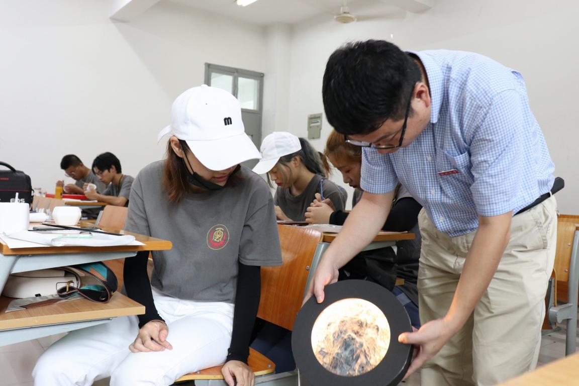 初到教室,顾任飞副院长受到了实践队队员们的热烈欢迎。随后,队长向顾副院长介绍了实践队体验瓯窑青瓷烧制过程,以及义卖品制作情况。顾副院长十分亲切地和队员们交流,仔细观看同学们画泥罐、做工艺的过程,并询问同学们对传统工艺的感想。