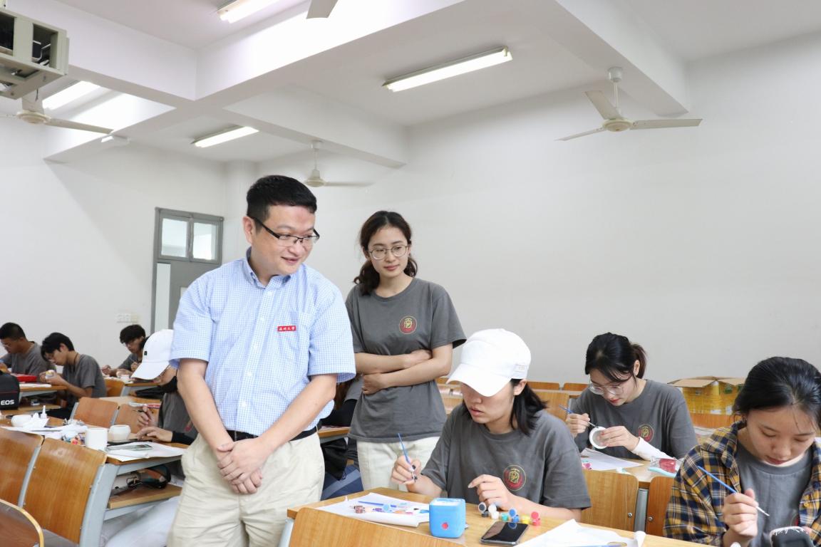 2019年7月19日上午9时许,万象城awc888副院长顾任飞和学生科辅导员张佳慰问了正在美院制作手工义卖品的“魅力工艺”暑期社会实践队。