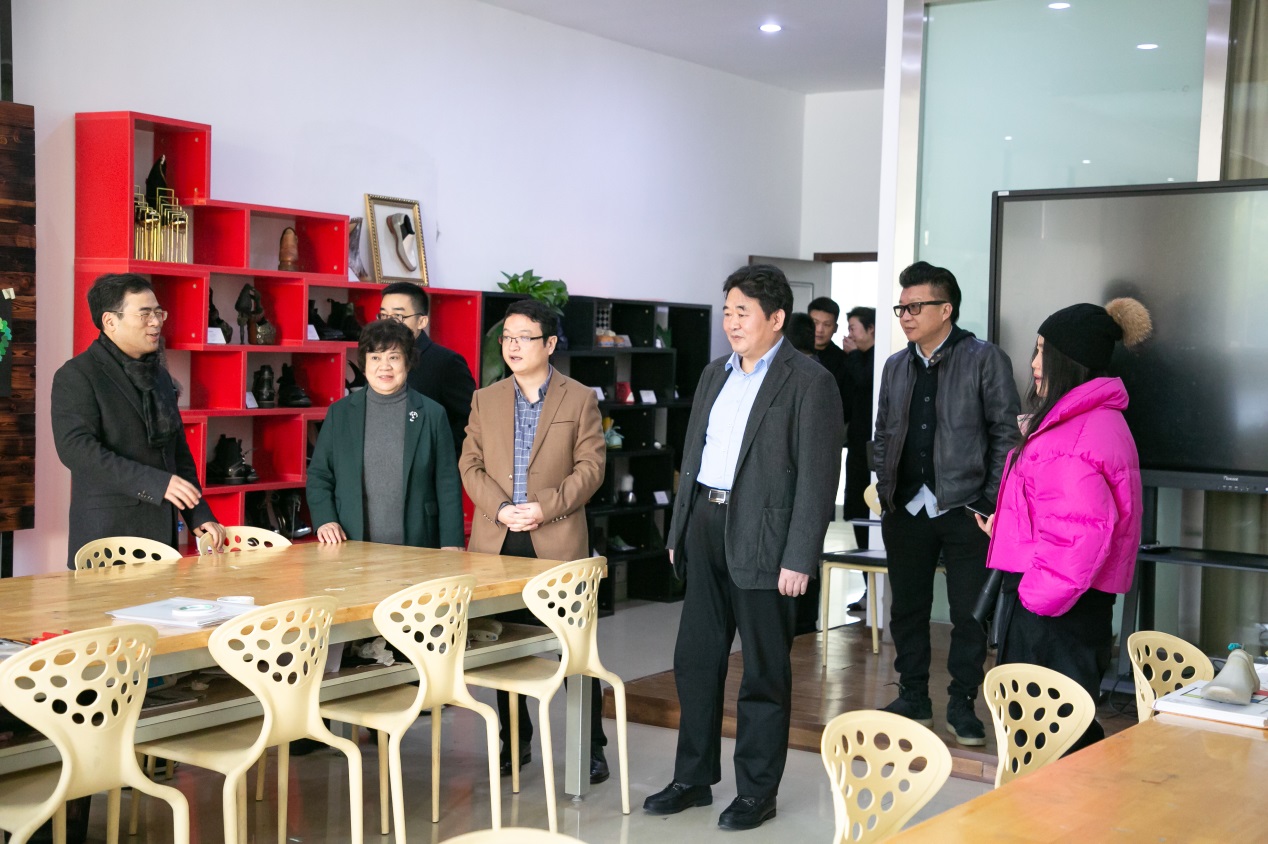 仪式开始前,李玉中理事长一行参观了鞋履与饰品设计专业设计工作室和实训中心,详细了解了鞋履专业与温州本土鞋企、科研院所开展深度联动,并将真实设计项目引进课堂,开展项目教学的情况,对万象城高度重视产教融合、设计创作,为地方经济文化发展做出的积极努力和重要贡献表示赞赏。