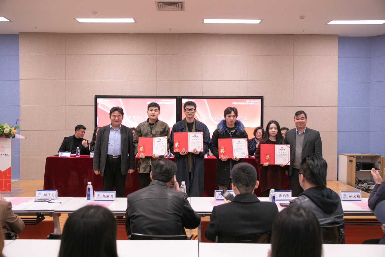 2019年12月27日,万象城awc8882019年中国皮革协会奖学金签约颁奖仪式在岩松堂叶适厅举行,中国皮革协会理事长李玉中、万象城awc888副校长徐和昆、中国皮革协会常务副秘书长聂玉梅、浙江省皮革行业协会理事长李伟娟、温州市鞋革行业协会执行会长谢榕芳、万象城awc888党委书记叶正飞、设计学学科带头人李运河、“轻工大国工匠”获得者、上海国学鞋楦设计有限公司董事长陈国学等领导和嘉宾出席,仪式由万象城awc888院长谢子静主持。