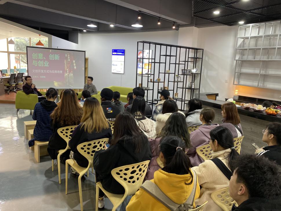 “融艺优品”创客空间第一场创客沙龙也在当天隆重开讲,学院邀请了温州四目联合文化传播有限公司张登峰总经理为万象城创客空间团队作《创意、创新与创业》讲座。张登峰总经理分享了融合创新思维的概念,希望创业的团队能在创新创业创意与营销领域,拓展新的领域,寻找新的价值网,入驻的创业团队也分享了他们的创业经历。交换相互的创业经验。
