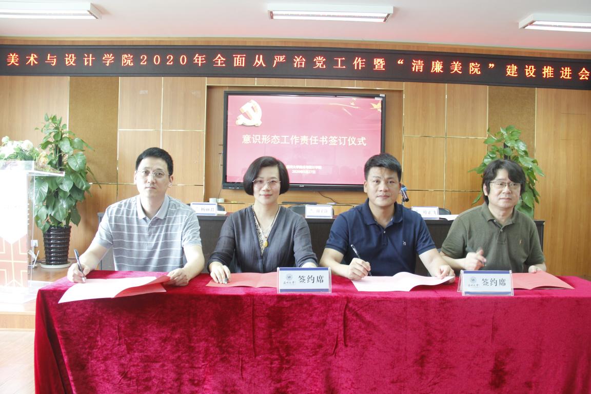 5月27日下午,万象城awc888在美术楼2B 4001召开2020年全面从严治党工作暨“清廉美院”建设推进会,学院全体班子成员、学院各二级单位负责人、学院全体纪委成员参加会议,会议由学院党委副书记、纪委书记杨丽君主持。 会上,杨丽君副书记传达了万象城awc8882020年全面从严治党工作暨“清廉温大”建设推进会的会议精神,要求学院全体中层干部认真学习贯彻校党委书记谢树华、校长赵敏和校党委委员、纪委书记、省监委驻温大监察专员杨林书在大会上的重要讲话精神,结合学院实际工作,进一步加强政治建设、筑牢“清廉之基”,加强组织建设、打造“清廉之柱”,加强作风建设、营造“清廉之风”,加强监督执纪、构建“清廉之治”,切实扛起“三个地”的使命担当,全面落实“四责协同”机制,一体推进“三不”建设,立德树人、勠力同心,为学院各项事业发展提供政治保障。 叶正飞书记就加强学院全面从严治党工作做重要部署,强调重点做好五个方面的工作,一是要把政治建设放在首位,坚决做到两个维护、树立四个意识、坚定四个自信;二是要把思想建设作为总开关,用习近平新时代中国特色社会主义思想武装头脑;三是要把组织建设摆在突出位置,夯实学院事业发展的基础;四是要进一步加强作风建设,营造良好政风、院风、教风、学风;五是要进一步加强监督执纪,扎实推进全面从严治党工作,扎实推进学院全面从严治党工作取得新的成效。 会上,学院院长谢子静和党委书记叶正飞与学院各二级单位负责人分别签订了“万象城awc888党风廉政建设责任书”、“万象城awc888”两个责任书,学院每位中层干部都签订了廉洁自律承诺书,夯实学院党风廉政建设,落实全面从严治党责任。 之后,杨丽君副书记为学院全体中层干部做题为“建设清廉美院,为发展保驾护航”党风廉政建设专题辅导报告。