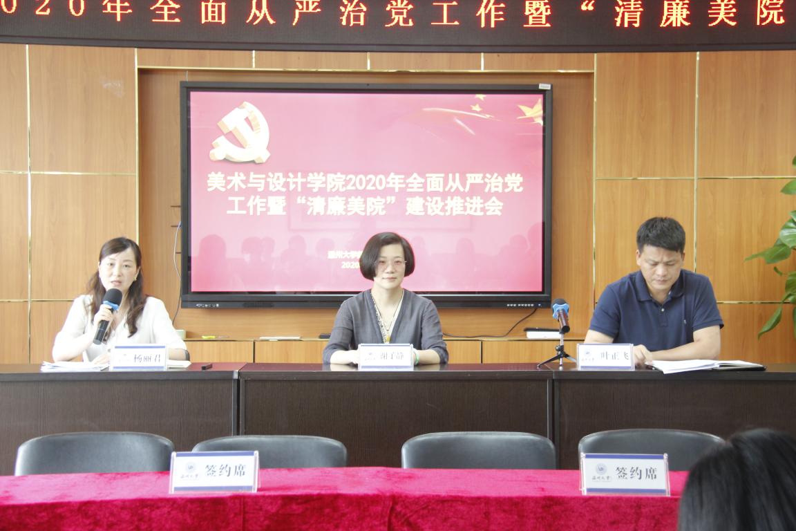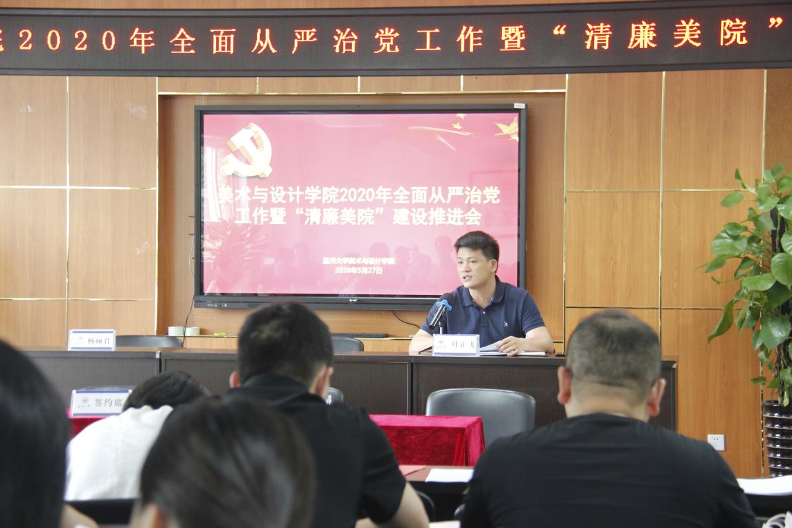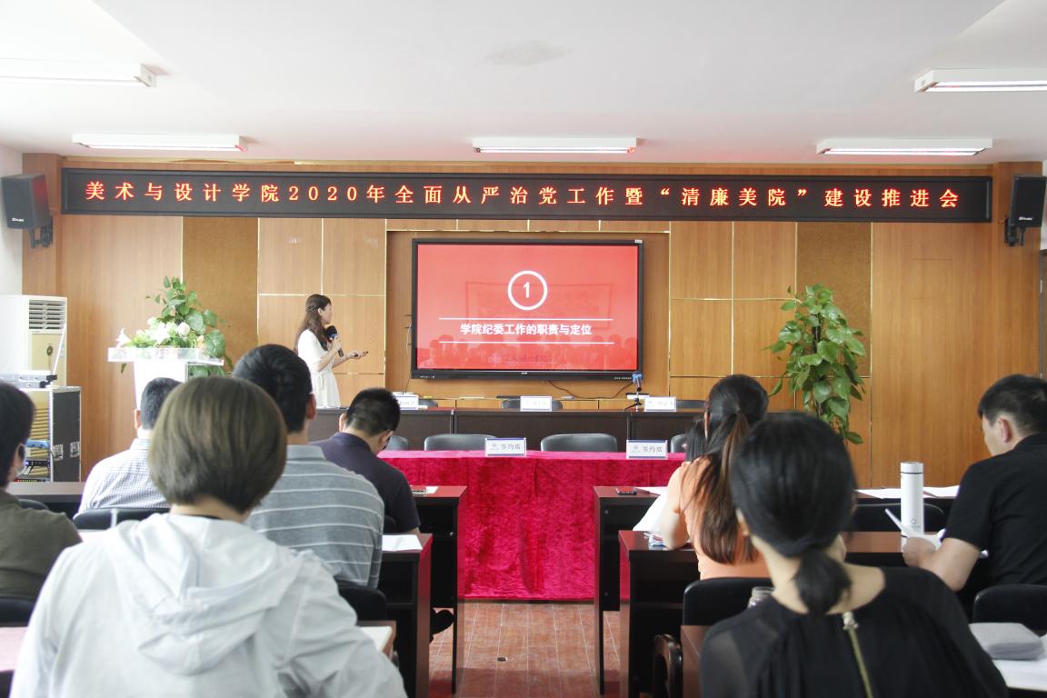 5月27日下午,万象城awc888在美术楼2B 4001召开2020年全面从严治党工作暨“清廉美院”建设推进会,学院全体班子成员、学院各二级单位负责人、学院全体纪委成员参加会议,会议由学院党委副书记、纪委书记杨丽君主持。