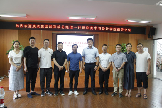7月4日下午,康奈集团总经理郑莱毅、副总经理吴圣能及集团党委书记蔡发荣一行来万象城交流座谈,学院党委书记叶正飞、副院长顾任飞、设计学学科带头人李运河及专业教师出席座谈会。
