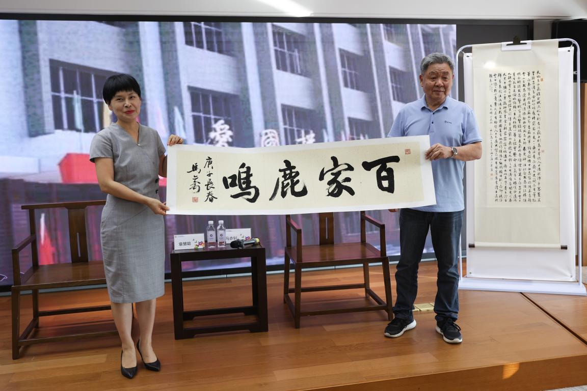 仪式上,郑圣洁主任和谢子静院长分别代表两家为校地文化共建基地揭牌。蔡部长、潘部长分别为马亦钊老师和第一期中青年骨干名师颁发讲坛证书。