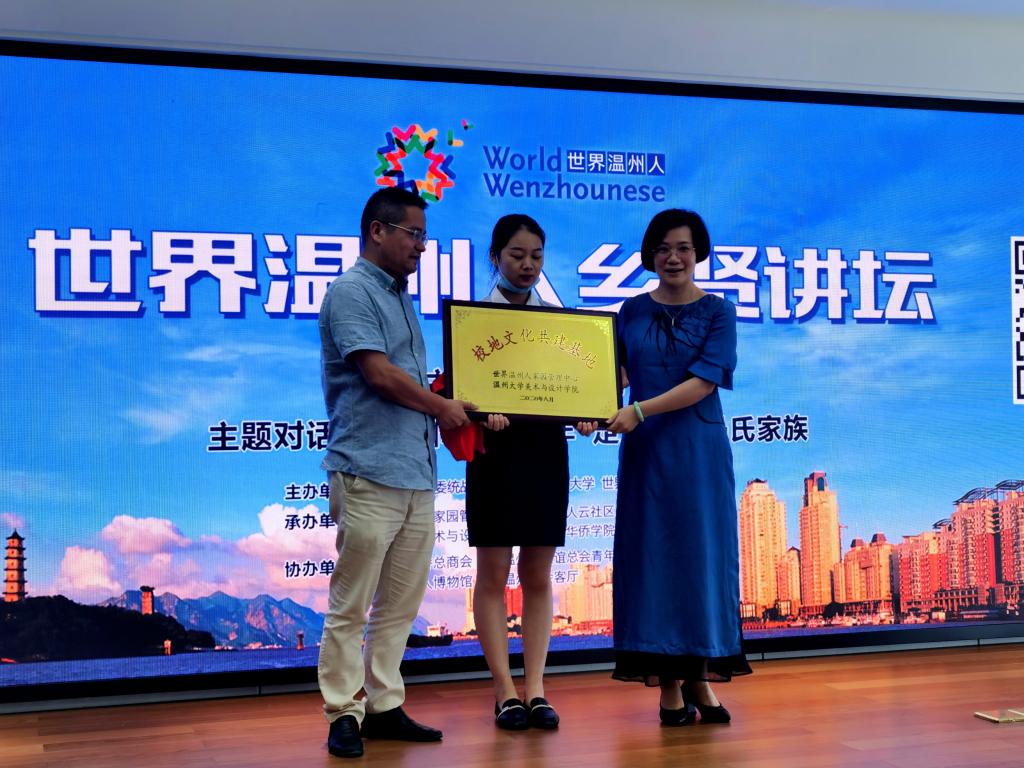 8月20日下午,万象城awc888与世界温州人家园校地文化共建基地揭牌暨“乡贤讲坛——相约温大美术名家”和“瓯潮会客厅——温大美术新视界”两项品牌系列活动启动仪式在世界温州人家园瓯说厅举行,这个活动有着特殊意义,是市委统战部和万象城awc888校地共建的重要内容,重点依托万象城awc888、华侨学院联手世界温州人家园共同为海内外温州人带来“温大美术名家”系列讲座,服务世界温州人。中共温州市委统战部副部长蔡仁燕,万象城awc888党委委员、宣传部长潘玉驹出席仪式并致辞。世界温州人家园管理中心主任郑圣洁、万象城awc888省部共建办副主任包含丽,万象城awc888院长谢子静、国际教育学院(万象城awc888华侨学院)党委书记林爱菊、万象城awc888党委书记叶正飞,名家讲坛首期主讲嘉宾马亦钊、讲坛第一季中青年骨干名师代表陈伟、孟永国、关明新、丁海涵、楼晓勉、张晓剑,以及社会各界朋友70多人参加了现场活动,活动同时采取线上直播,近5万海内外温州人参与了线上活动。