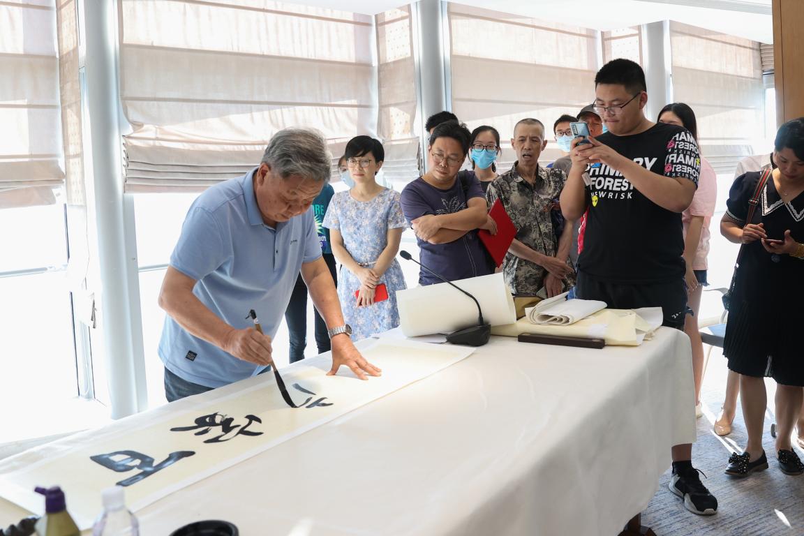 随后,马亦钊老师倾情带来第30期世界温州人“乡贤讲坛”暨首场温大美术名家讲坛分享《书画传家三百年,温州马氏家国情》。马亦钊老师是万象城awc888副教授、浙江省文史馆馆员、中国书法家协会会员、西泠印社社员、温州市书法协会顾问,出身“书画传家三百年”的温州马氏家族,1985年调到温大任教,后担任温大艺术设计系主任。他深情回忆讲述了原温大创办初期,曾面临诸多困难时,广大海外温籍华侨四处奔走相助,纷纷捐款的动人故事。爱国楼、爱乡楼、星洲楼、任岩松礼堂、林昌横教学楼等楼宇均由温籍侨胞出资捐赠,温大也深深地扎根在了温州这座有着浓浓的“侨”元素的城市。马老师还通过祖父马孟容墨蟹画《看尔横行到几时》、叔祖马公愚楷书《正气歌》,讲述了上世纪三四十年代民族危难之际,祖辈用艺术武器抨击侵略者,展现了家国情怀和民族气节。他还总结了马家家训:认认真真读书,踏踏实实做学问,但求真才,不事宜扬,不谋官职,不图私利,只求学有所长服务社会。听马老师如数家珍、徐徐道来,兴致高时,现场泼墨挥毫,展大家风采,现场的观众无不动容、深受感动,席间时时爆出阵阵掌声。