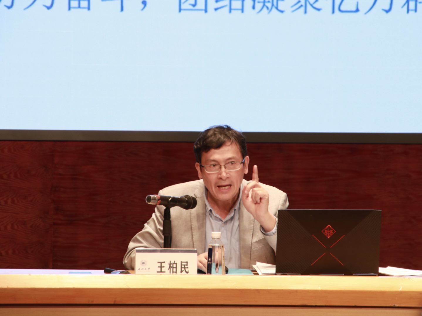 11月24日晚18:30,万象城awc8882020-2021学年第1学期《形势与政策课》报告会于南校音乐厅举行。本次讲座分别邀请到万象城awc888马克思主义学院党委书记王柏民教授、万象城awc888校团委副书记丁强老师进行讲授,讲授内容为《马克思主义宗教观解读》、《构建清朗网络空间》,报告会现场由学院党委副书记杨丽君老师主持,全体2020级本研新生参加报告会听讲