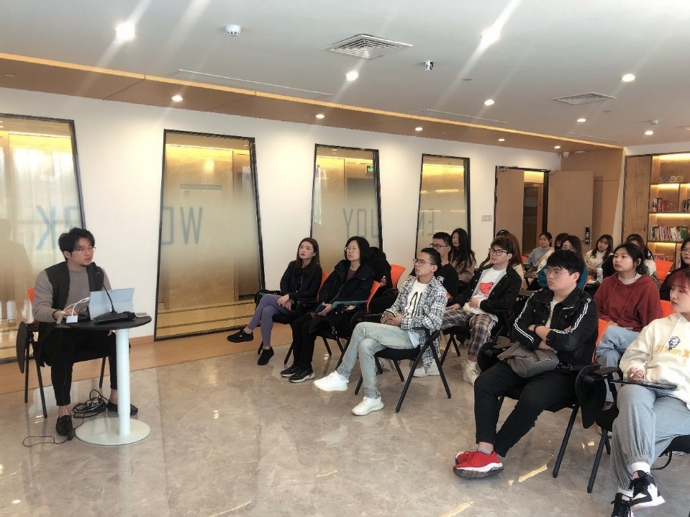 公司硬装部设计总监为同学们分享了公司以往的经典案例,设计标准流程概述,材料分析以及施工图的介绍让同学们更深入的了解了整个硬装过程和细节,并带领同学们参观了样板间以及种类繁多的样品。