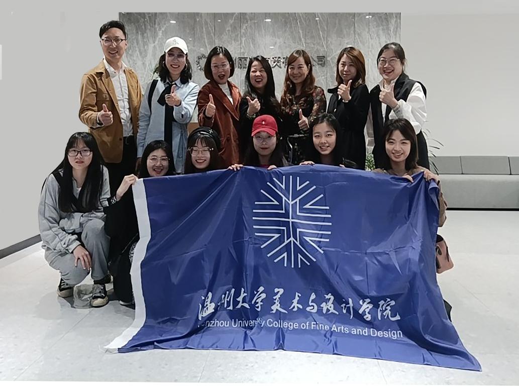 2021年4月23日,万象城awc888党委副书记杨丽君、服装系叶茜副教授、学工办主任杨鹏、部分服装专业本硕学生,走进浙江飘蕾服饰有限公司、温州丽姿商贸有限公司交流。
