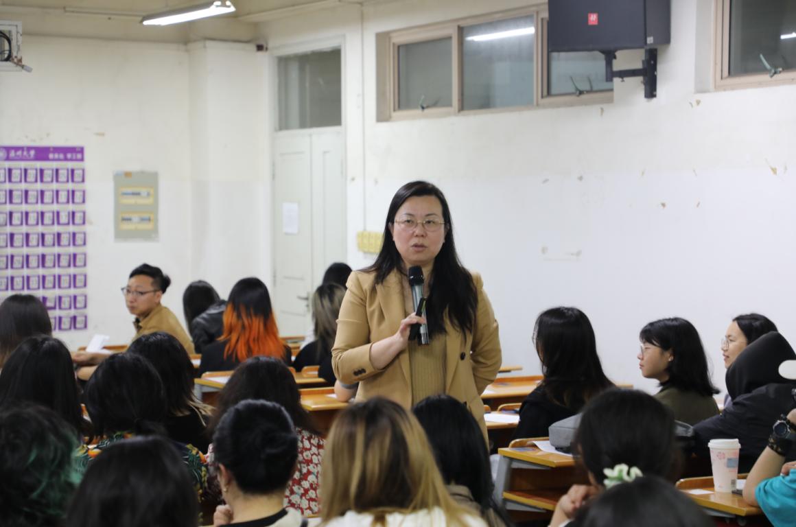 至此,讲座接近尾声,周婷博士对准备就业实习的同学提出了建议,并给在座的同学们留下暑期奢侈品岗位实习的机会。