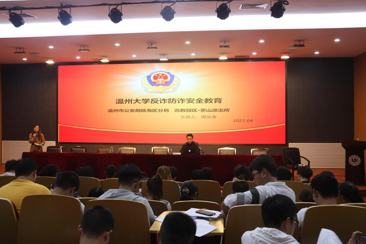 紧接着,周文涛警官对大家进行了反诈防诈的安全教育。周警官从现实发生的大学生诈骗案例切入,警示我们诈骗离我们并不遥远,除了电话诈骗和网络兼职诈骗,还要防范钓鱼网站的诱惑,提高警惕,防诈反诈。所谓害人之心不可有,防人之心不可无,电信网络与大学生息息相关,我们要强化系统观念与法治思维,提升防范和辨别诈骗的能力和水平,推动建设更高水平的平安校园。