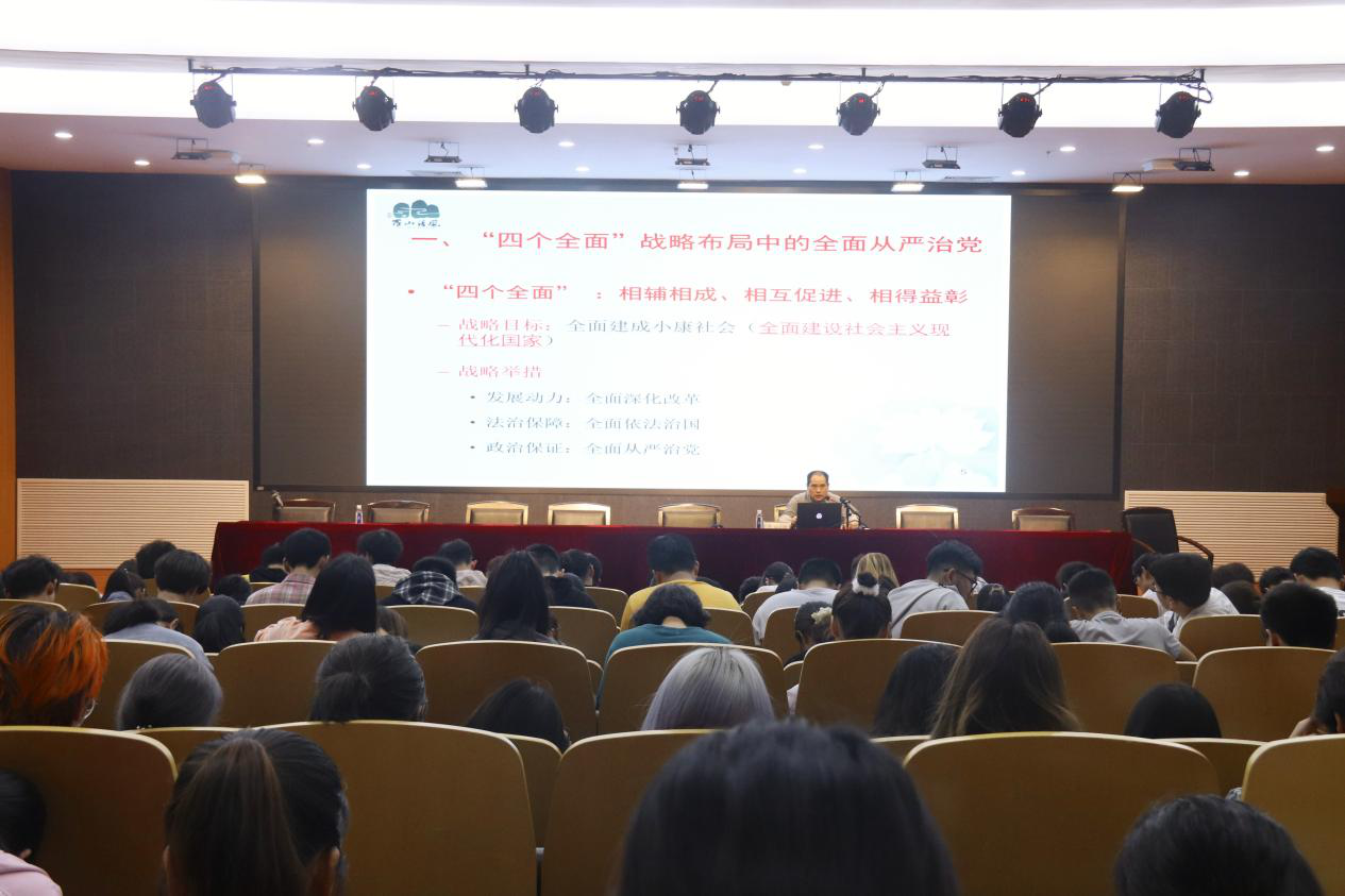 清风扶正气,廉洁值千金。对于“廉洁从业,风清气正”的正确观念,杨立淮老师重点介绍了全面从严治党的四个部分。其首先是“四个全面”战略布局,要把全面依法治国放在"“四个全面”战略布局中来把握,深刻认识全面依法治国同其他三个"全面"的关系,努力做到"四个全面"相辅相成、相互促进、相得益彰。其次,杨立淮老师讲解了全面从严治党的深刻内涵,需要我们不断提高政治判断力、政治领悟力和政治执行力。第三,全面从严治党永远在路上,对此杨立淮老师借天网行动、猎狐行动,明确指出党坚持反腐败无禁区、全覆盖、零容忍的战略目标。打铁还需自身硬,现在正处于国家走向复兴的时代,我们从事任何一个岗位,必须要明确国家的形势,坚持从严治党,不断提高党的领导水平和执政水平,提高拒腐防变和抵御风险的能力,才能确保党始终成为坚强的领导核心,始终持续先进性和纯洁性,确保党永葆生机活力。我们正处在大学学习成长、思想接受的阶段中,要时刻保持清醒的头脑,逐步接受多样化的理论,严守底线,坚持以自律为本,以廉洁奉公为起点,正确处理“自律”与“他律”的关系。