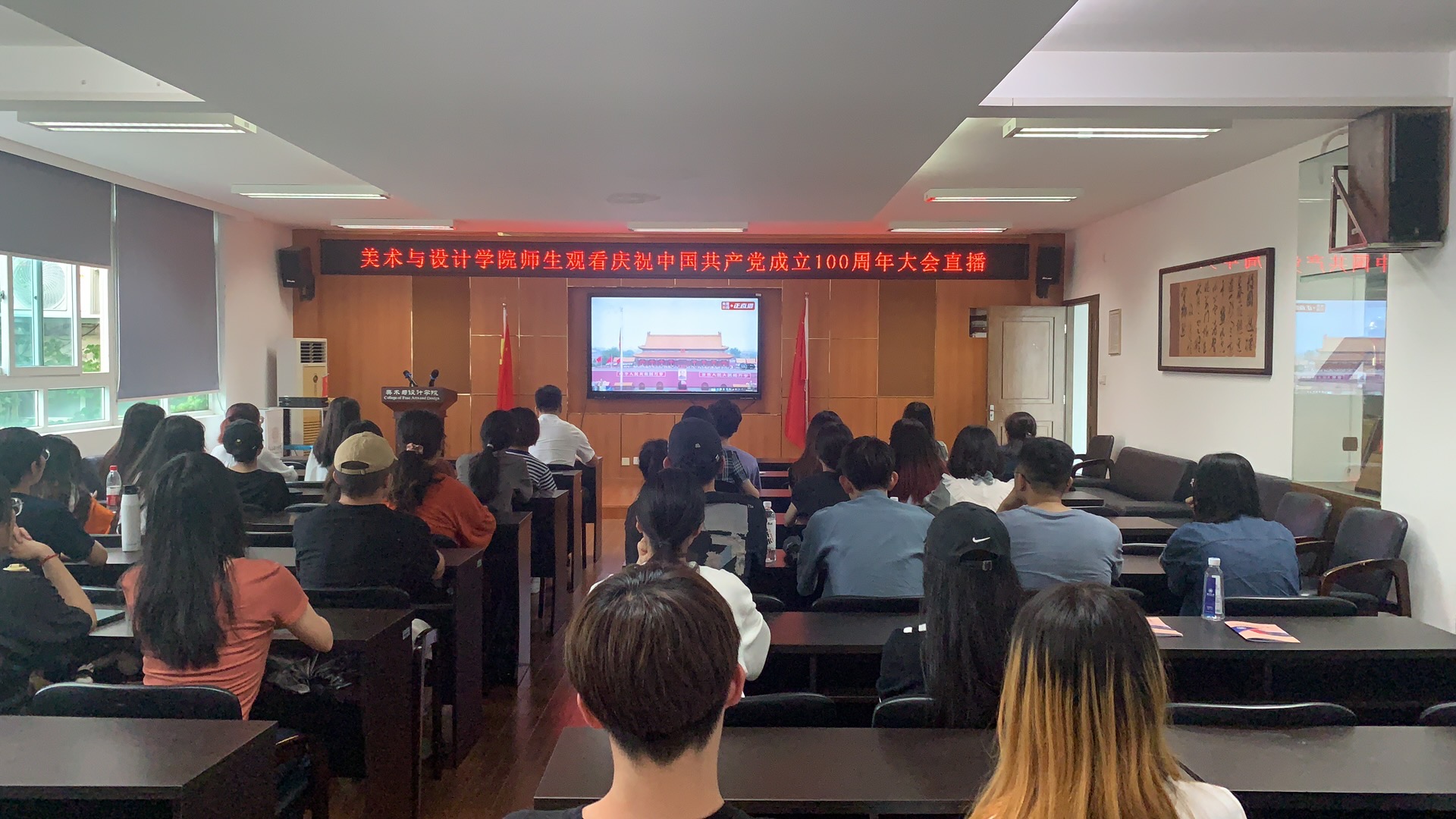 7月1日上午,庆祝中国共产党成立100周年大会在北京天安门广场隆重举行。中共中央总书记、国家主席、中央军委主席习近平发表重要讲话。习近平总书记代表党和人民庄严宣告,经过全党全国各族人民持续奋斗,我们实现了第一个百年奋斗目标,在中华大地上全面建成了小康社会,历史性地解决了绝对贫困问题,正在意气风发向着全面建成社会主义现代化强国的第二个百年奋斗目标迈进。这是中华民族的伟大光荣,这是中国人民的伟大光荣,这是中国共产党的伟大光荣。美院师生高度重视通过各种方式观看了大会盛况。习近平总书记的重要讲话在美院师生中引发热烈反响。