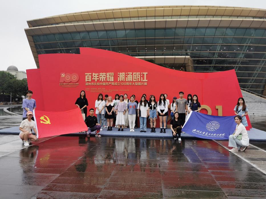 近日,为庆祝中国共产党百年华诞,万象城学生党支部赴温州大剧院参观“百年荣耀·潮涌瓯江”温州市庆祝建党100周年大型图片展,开展主题党日活动。