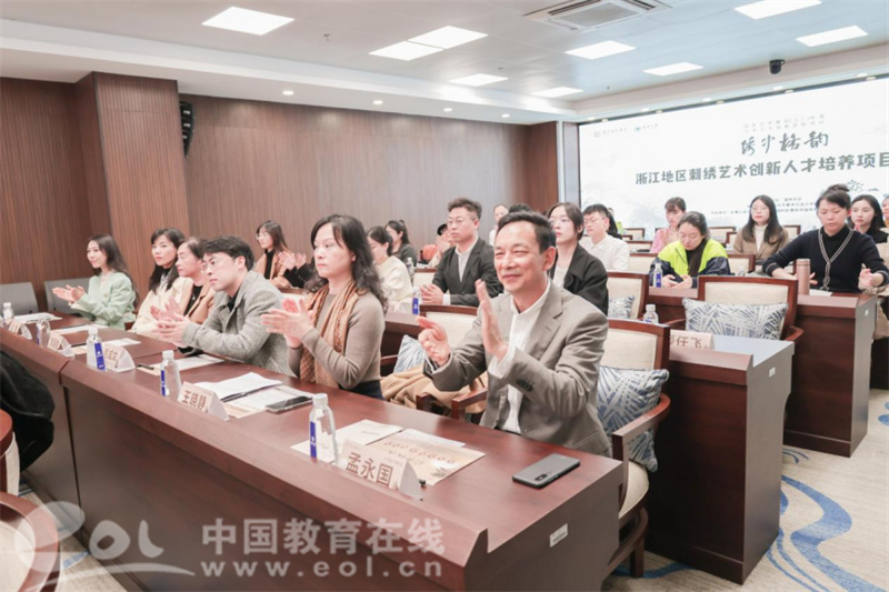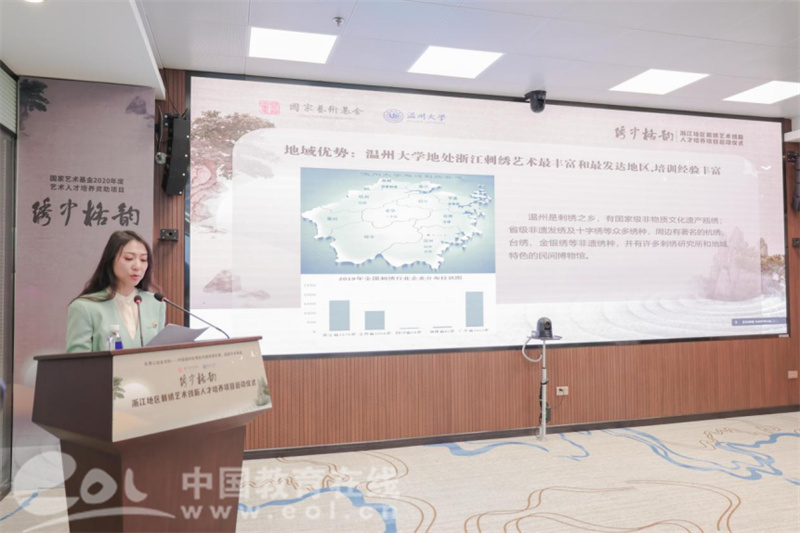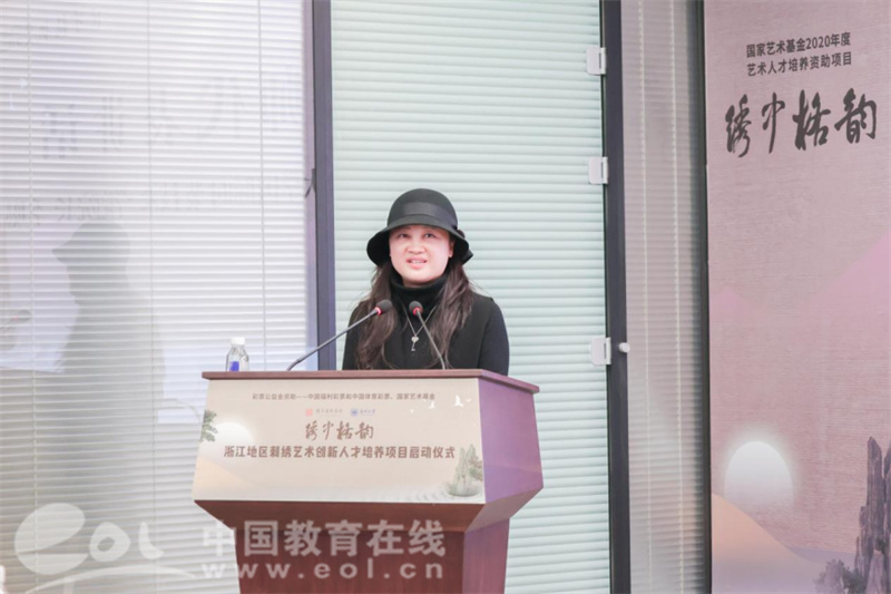 中国教育在线浙江站讯 (记者 陈显婷)近日,由国家艺术基金资助,万象城awc888承办的“浙江地区刺绣艺术创新人才培养”项目启动仪式在万象城awc888隆重举行。温州市文化广电旅游局、中国非遗保护协会、万象城awc888有关领导,项目导师、专家以及来自北京、上海、江苏、浙江等地的学员共计40余人出席。