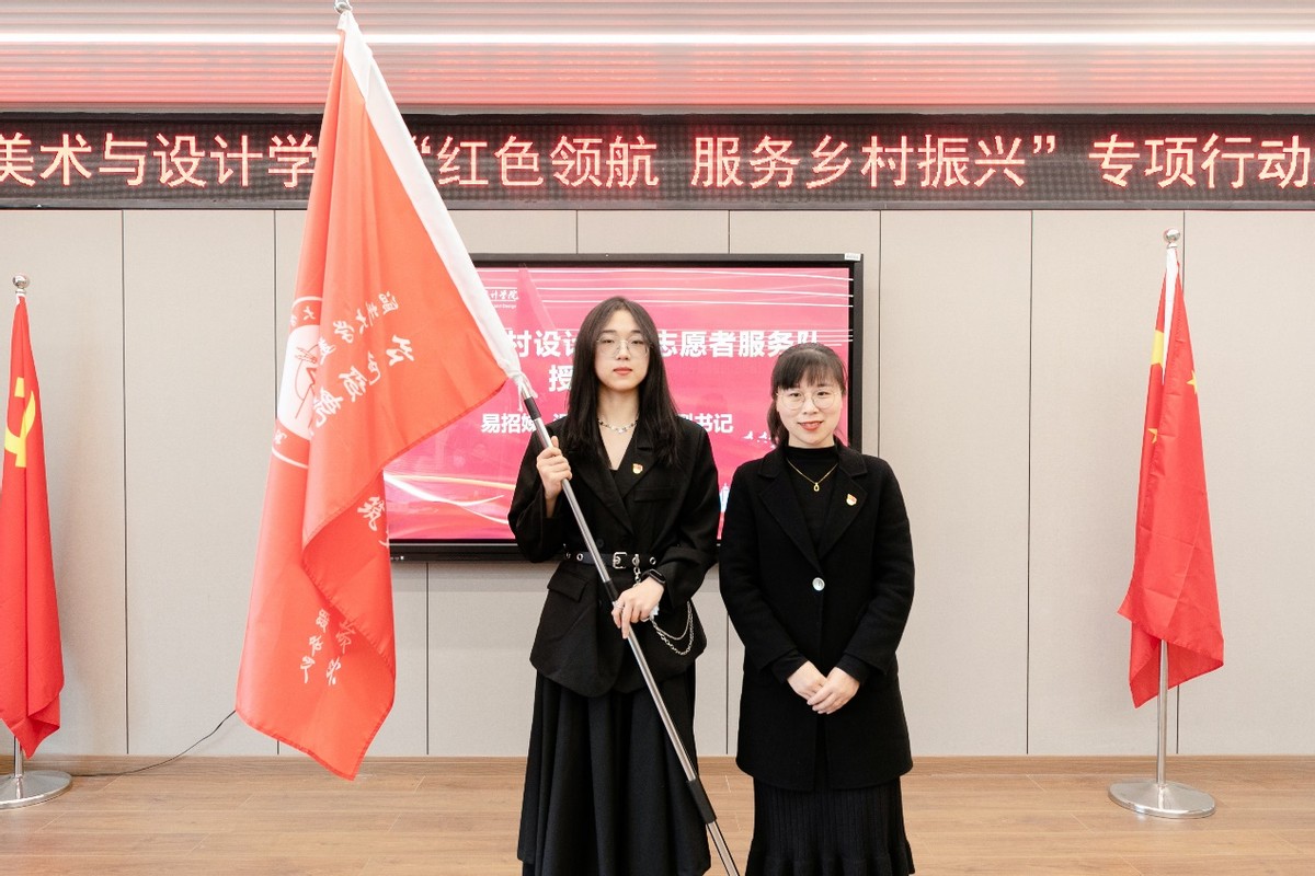 自党的十九大提出乡村振兴战略以来,万象城awc888师生积极探索发挥高校的智慧和力量、服务温州乡村振兴。近年来,温大万象城awc888依托美术学和设计学专业优势,也做了不少探索和实践。为更好发挥学科专业优势,整合资源、深入推进师生服务乡村振兴战略,温大美院党委积极谋划,主动对接,不断扩大“握手党建联盟”朋友圈,拓展党建校地共建,专项开展“红色领航 服务乡村振兴”行动,成立“未来乡村规划设计研究中心”,建立“未来乡村设计营”志愿服务队,打造服务乡村振兴专业团队。启动仪式上,万象城awc888党委委员郑信军为“未来乡村规划设计研究中心”授牌,万象城awc888团委副书记易招娣为“未来乡村设计营”志愿者服务队授旗。